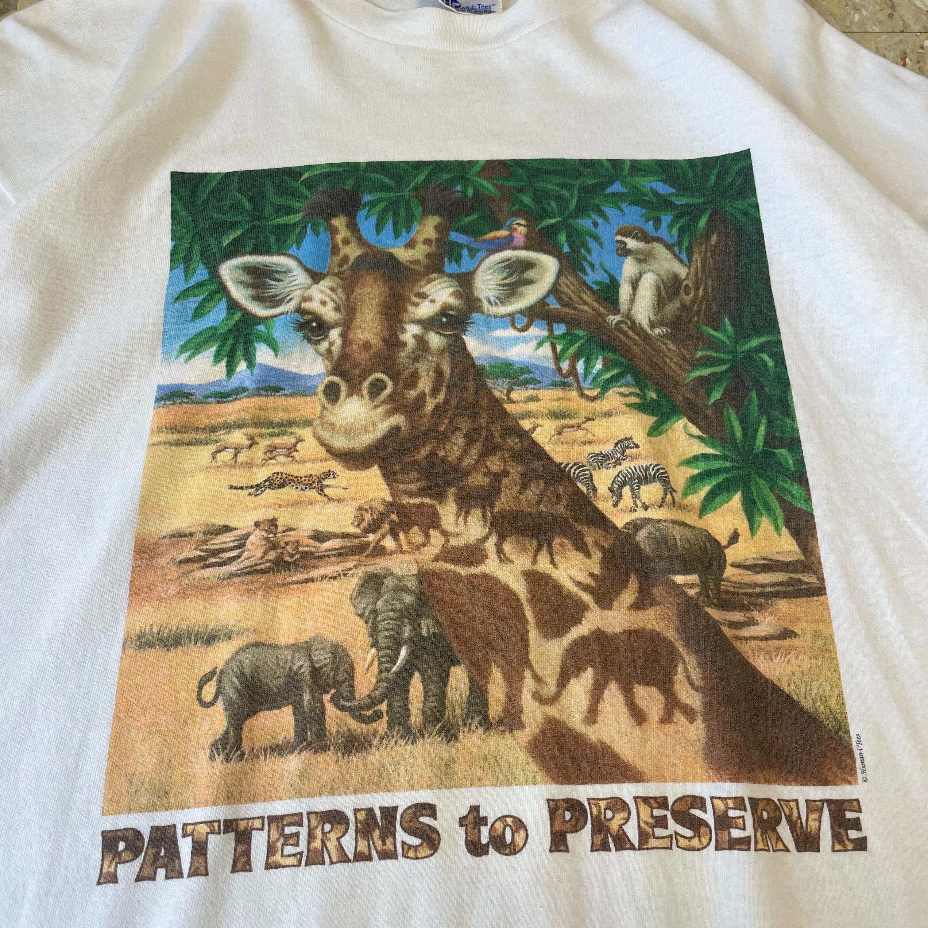 90s USA製 【Human-i-Tees】 ヒューマニティーズ "PATTERN to PRESERVE" キリン Tシャツ size.XL
