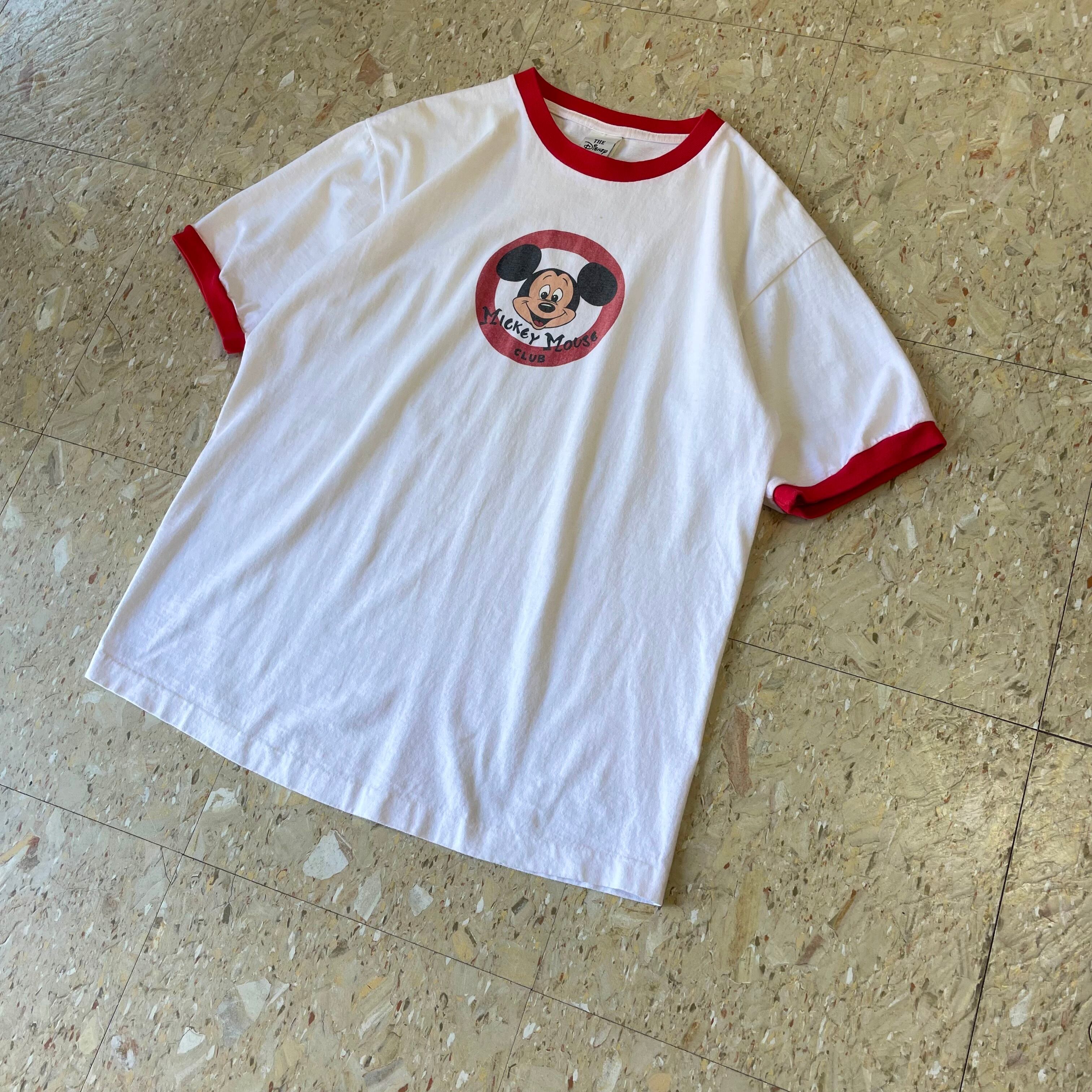 90s USA製 【Disney】 ディズニー "Mickey Mouse Club" リンガー Tシャツ size.L