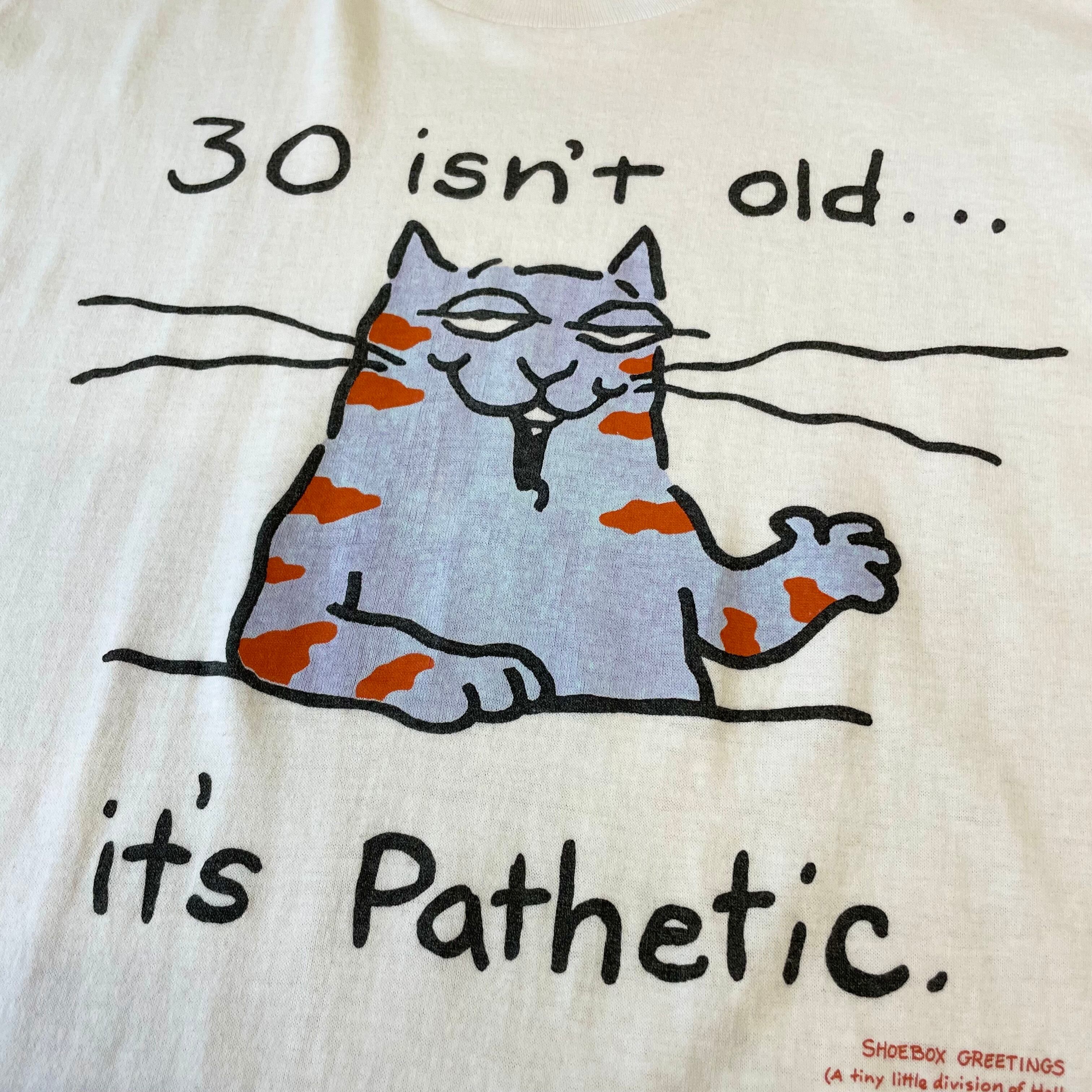 80s〜 【SHOEBOX GREETINGS】 "30 isn't old…,it's Pathetic" ネコ メッセージ Tシャツ size.XL