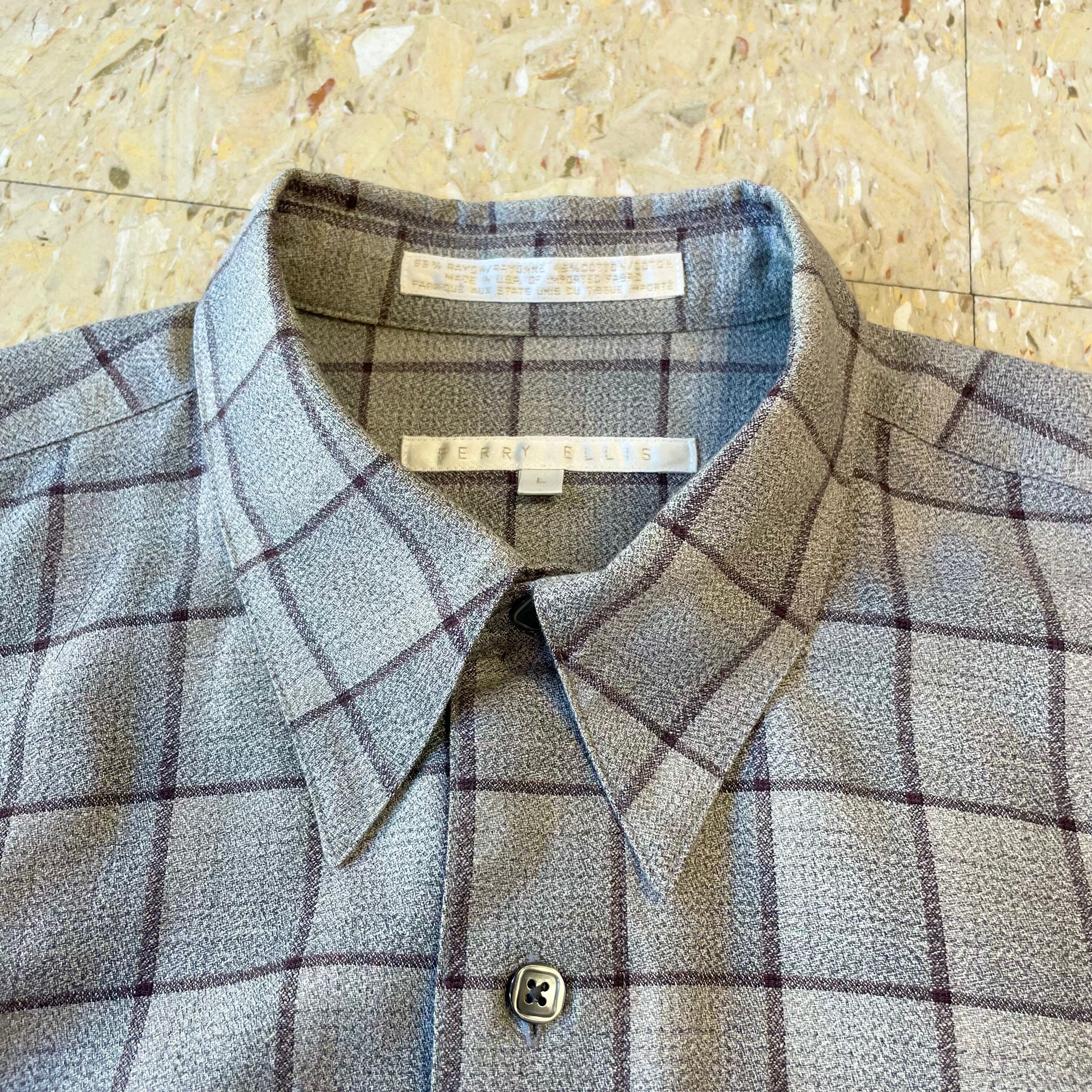 【Perry Ellis】 ペリーエリス レーヨンコットン オンブレチェック シャツ size.L