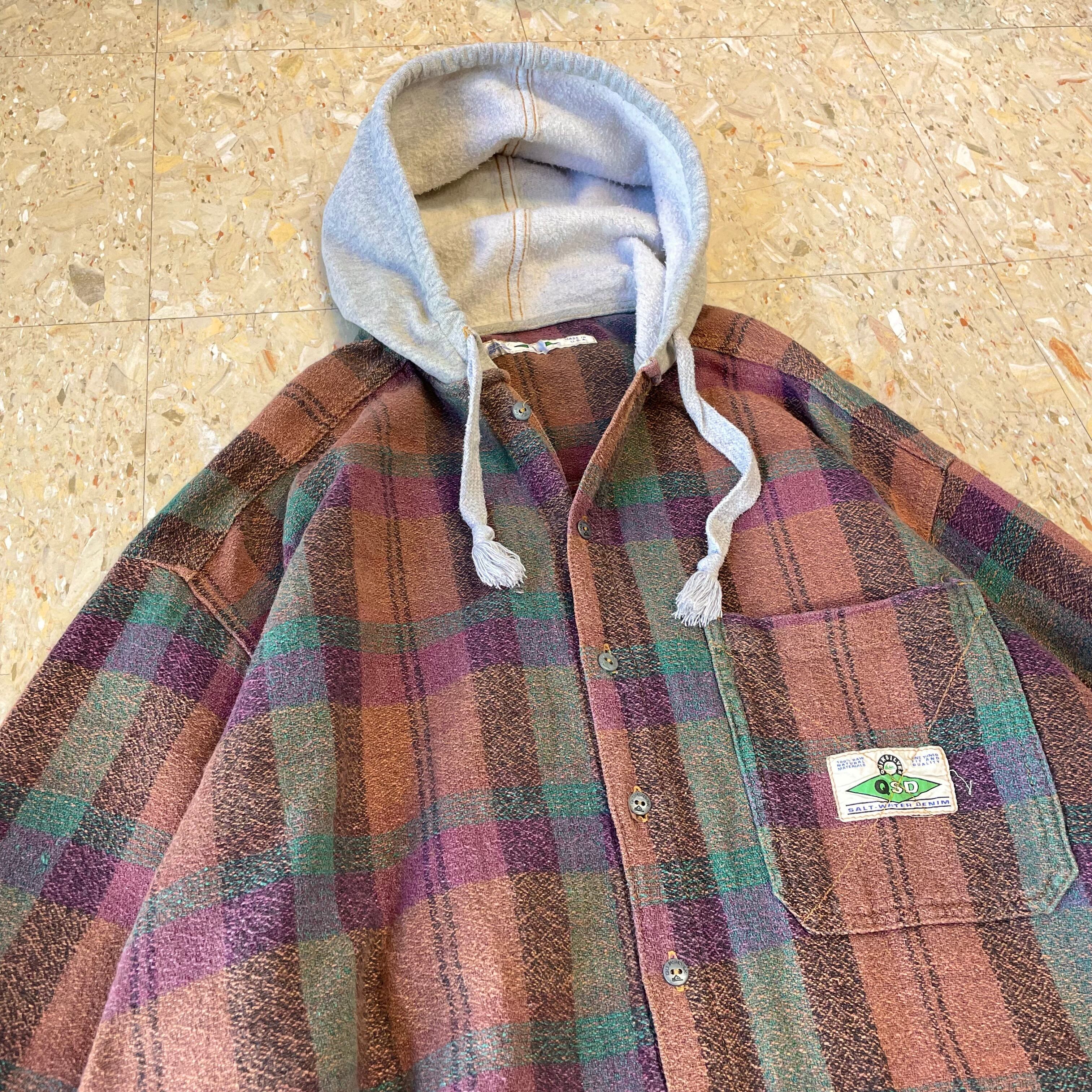 90s USA製 【Quiksilver】 クイックシルバー フードネル シャツジャケット size.L