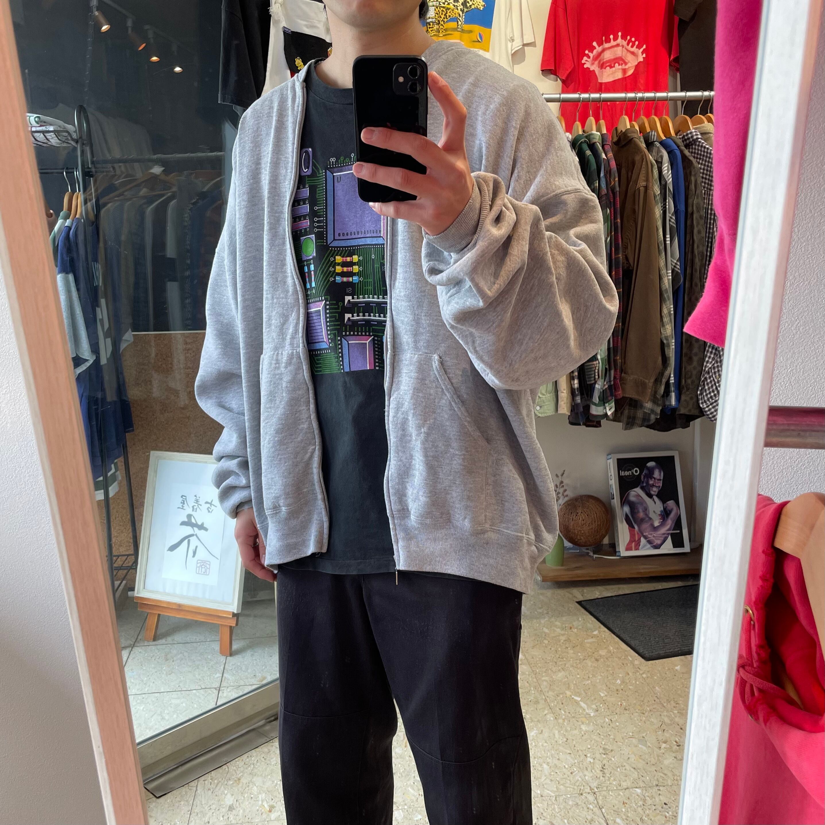 90s メキシコ製 【Russell athletic】 ラッセルアスレチック フルジップ スウェットカーディガン 無地 グレー size.XXL