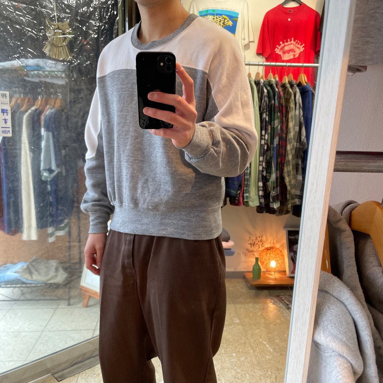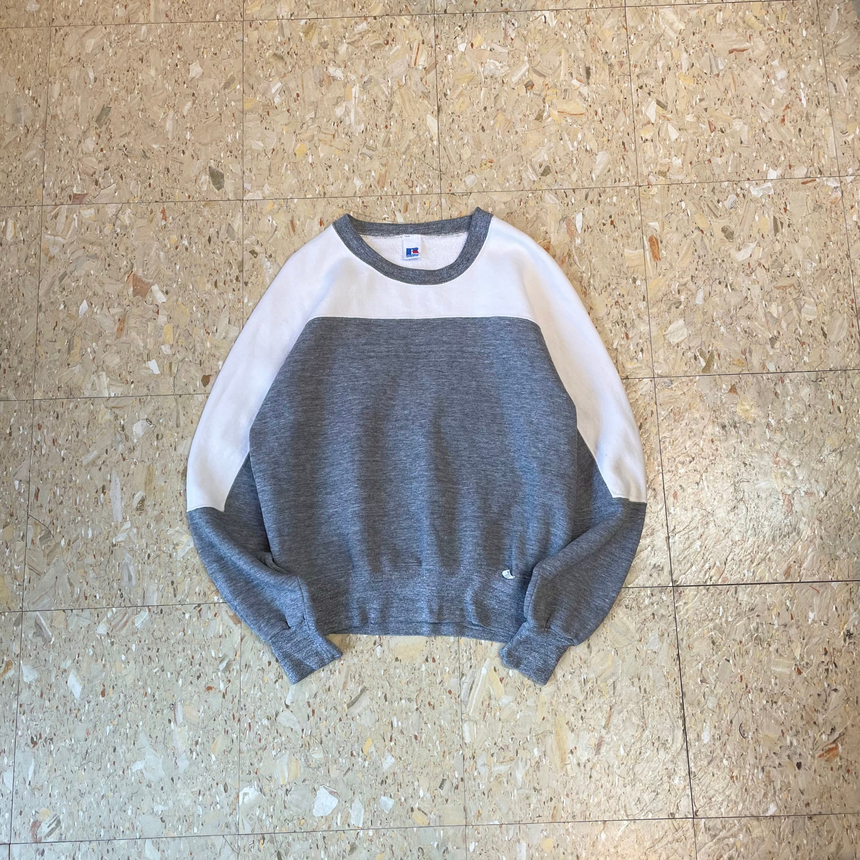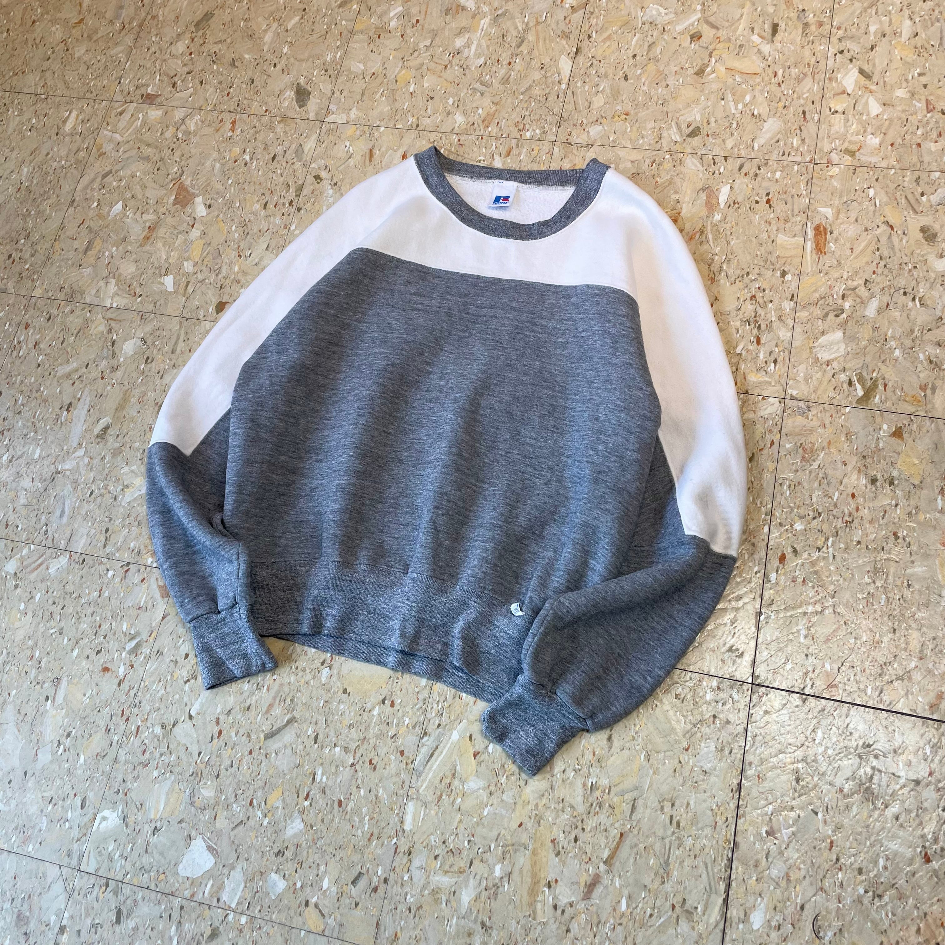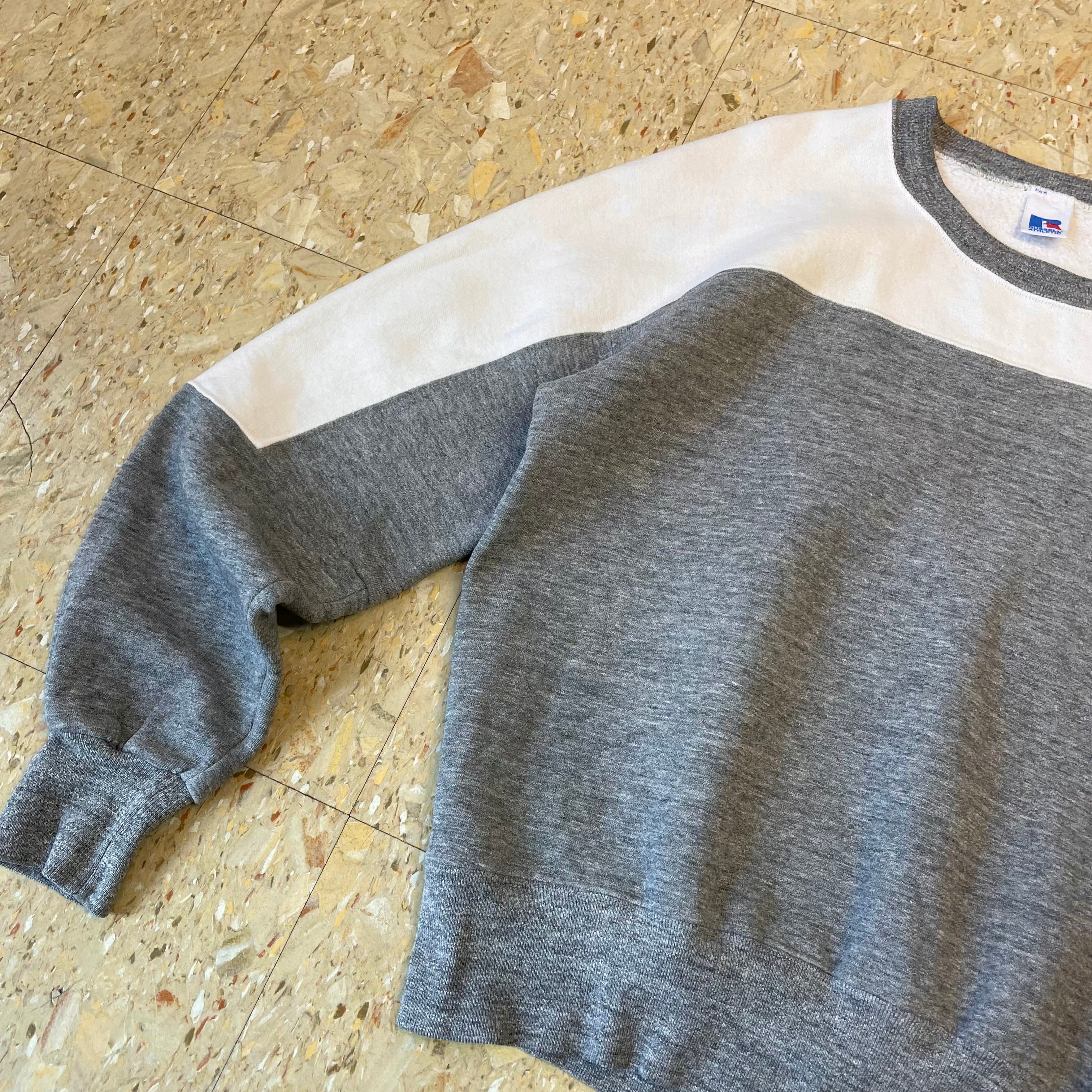 80s 【Russell athletic】 ラッセルアスレチック カラーブロック ツートン スウェット グレー ホワイト size.M相当