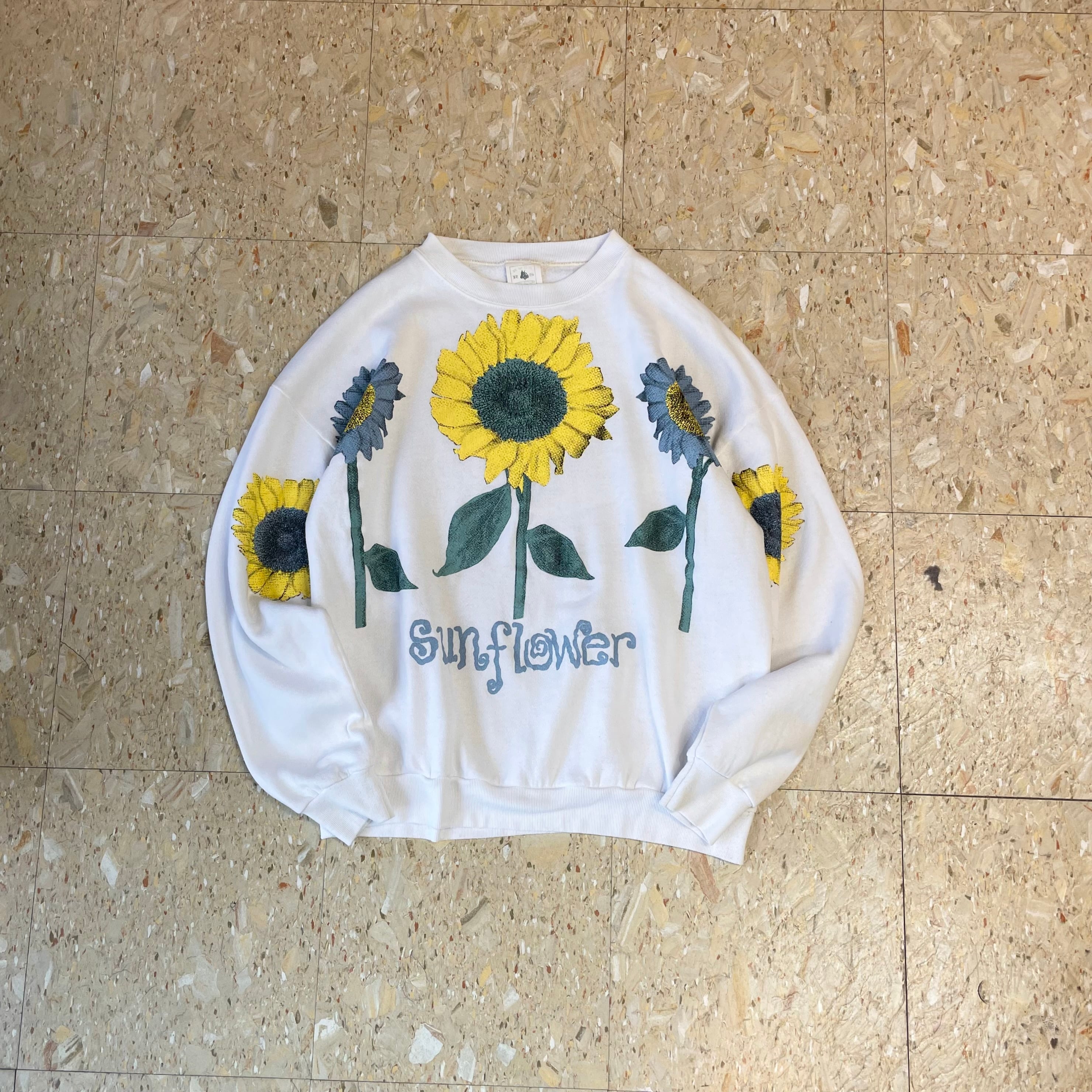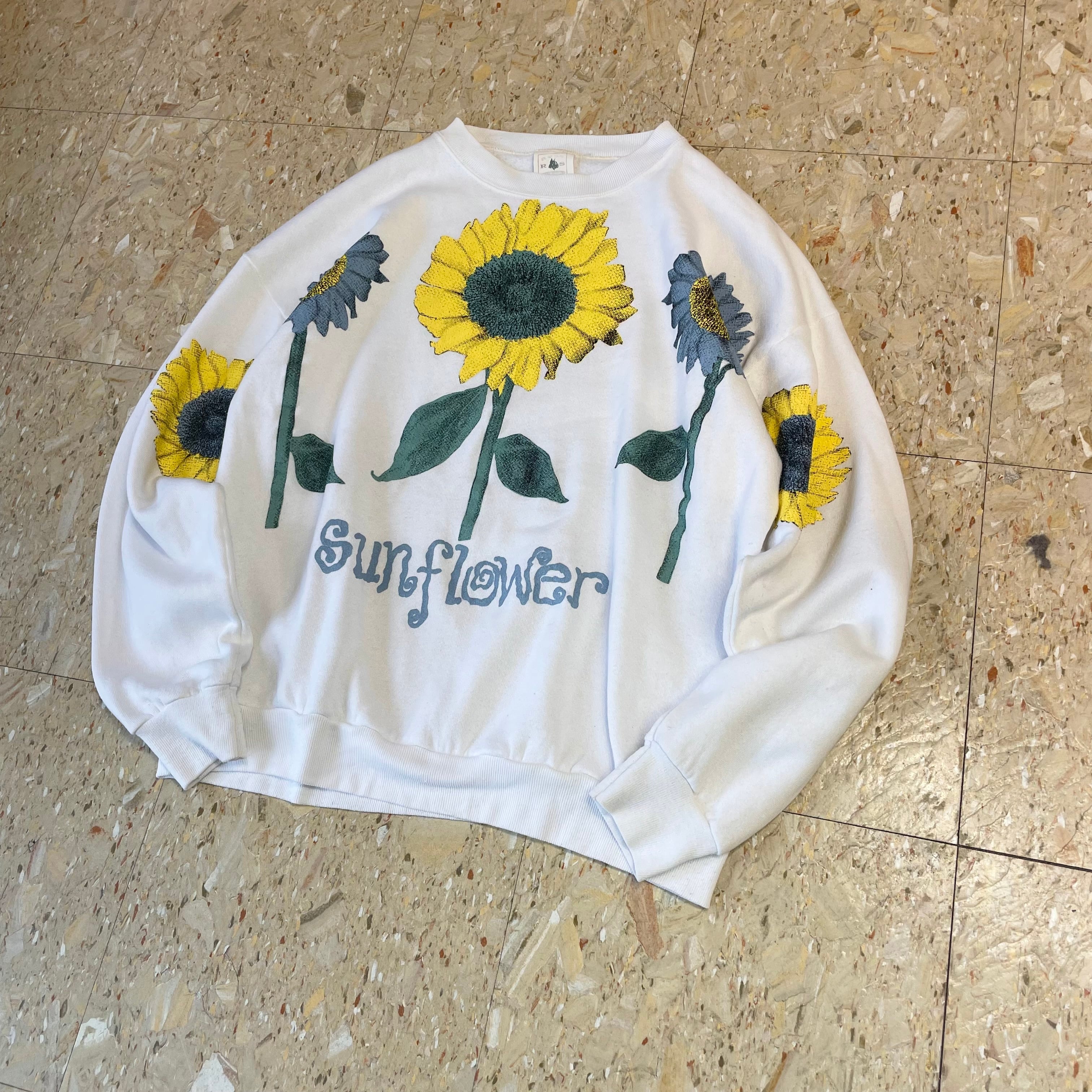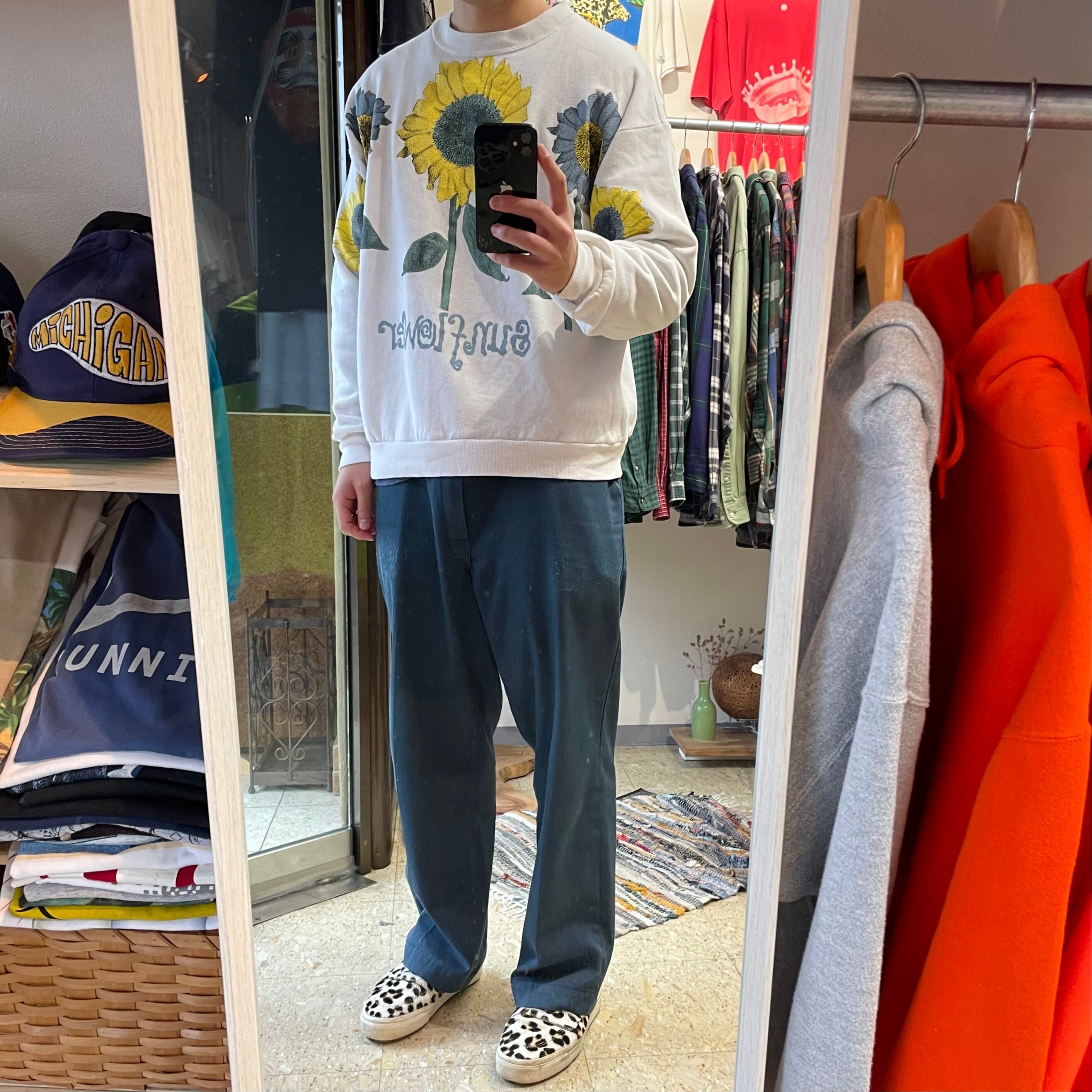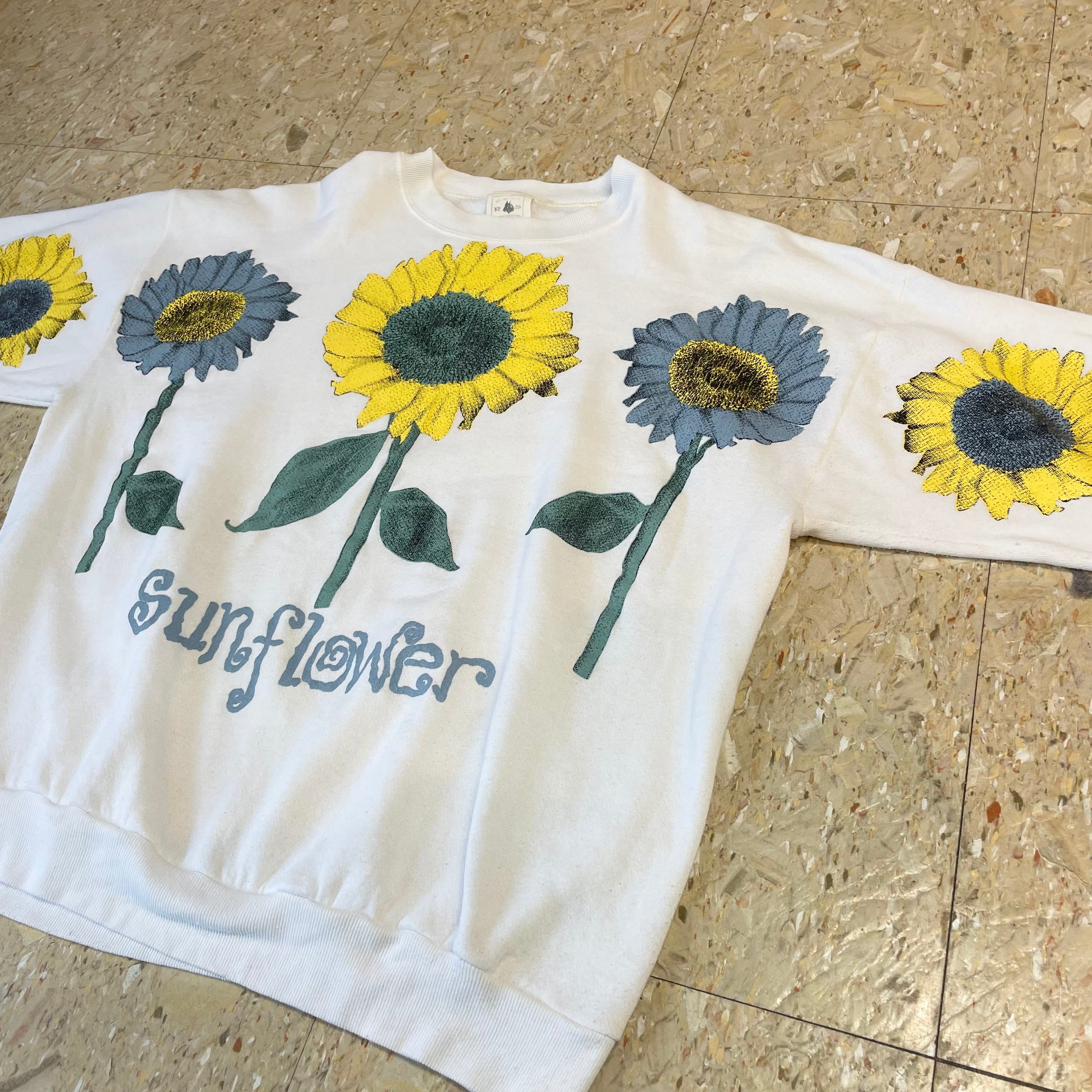 90s USA製 【フラワープリント】 "Sunflower" ひまわり 大判プリント スウェット size.L相当