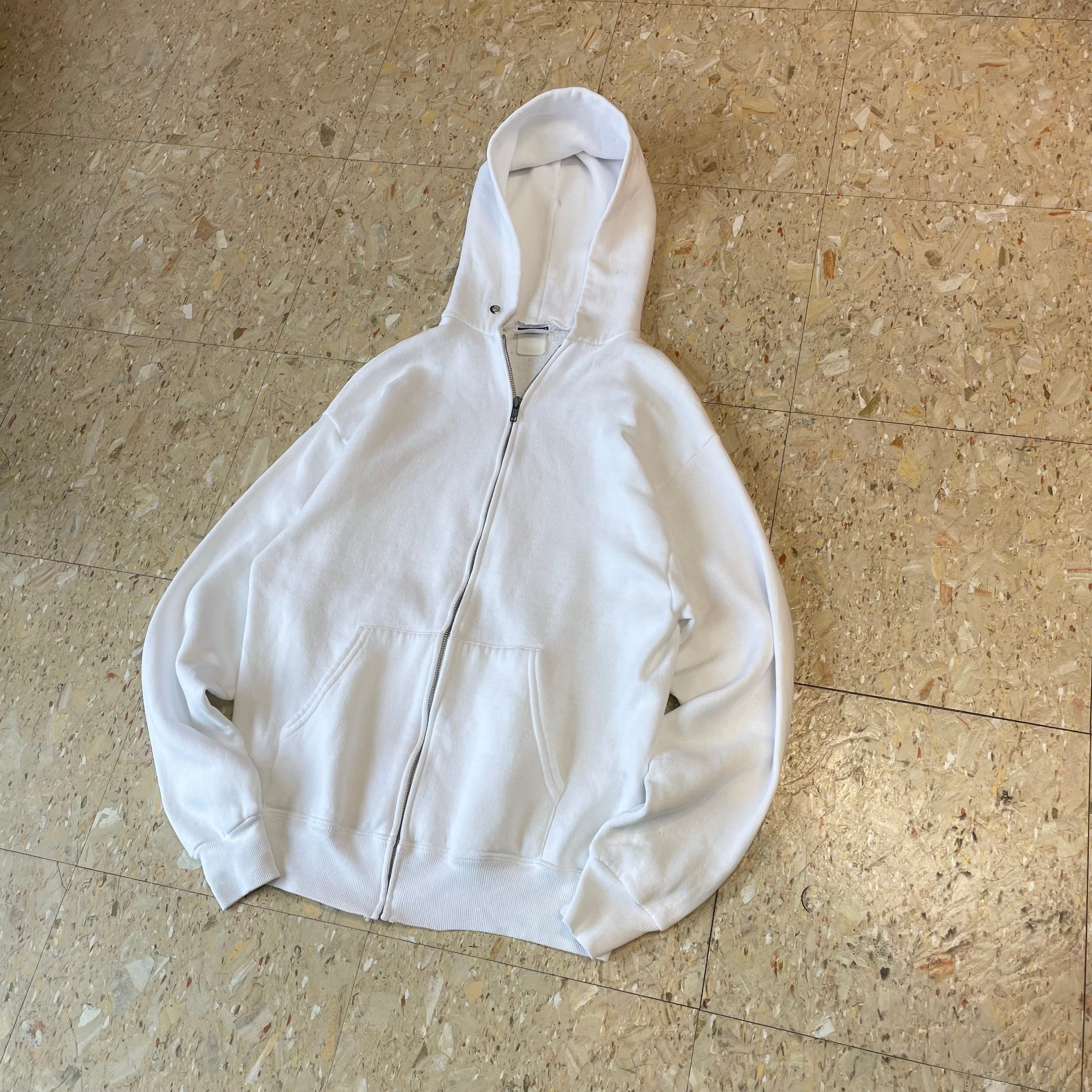 90s〜 【JERZEES】 ジャージーズ フルジップ パーカー 無地 ホワイト size.M