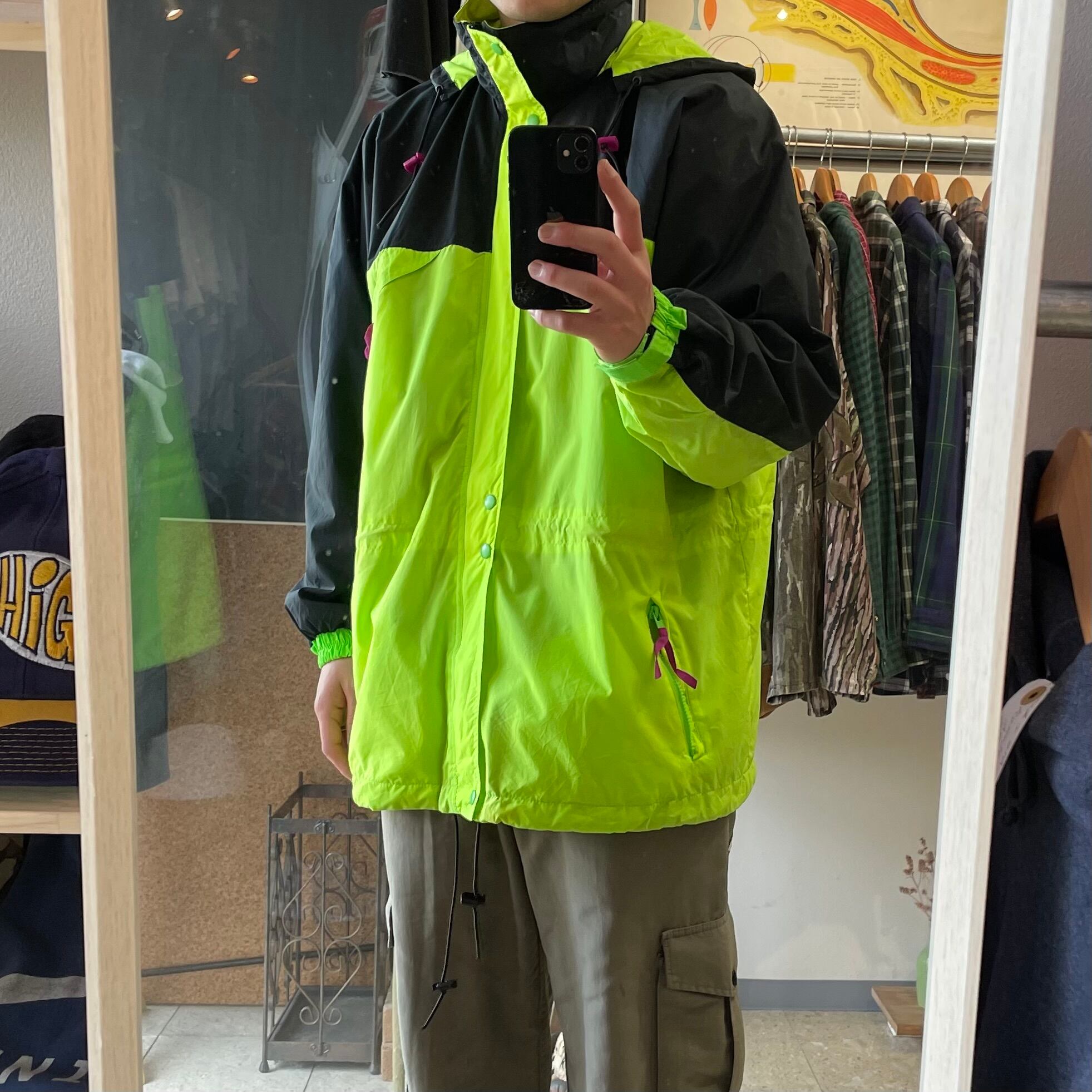 90s 【OLD GAP】 オールドギャップ ナイロン マウンテンパーカー 蛍光イエロー size.XL