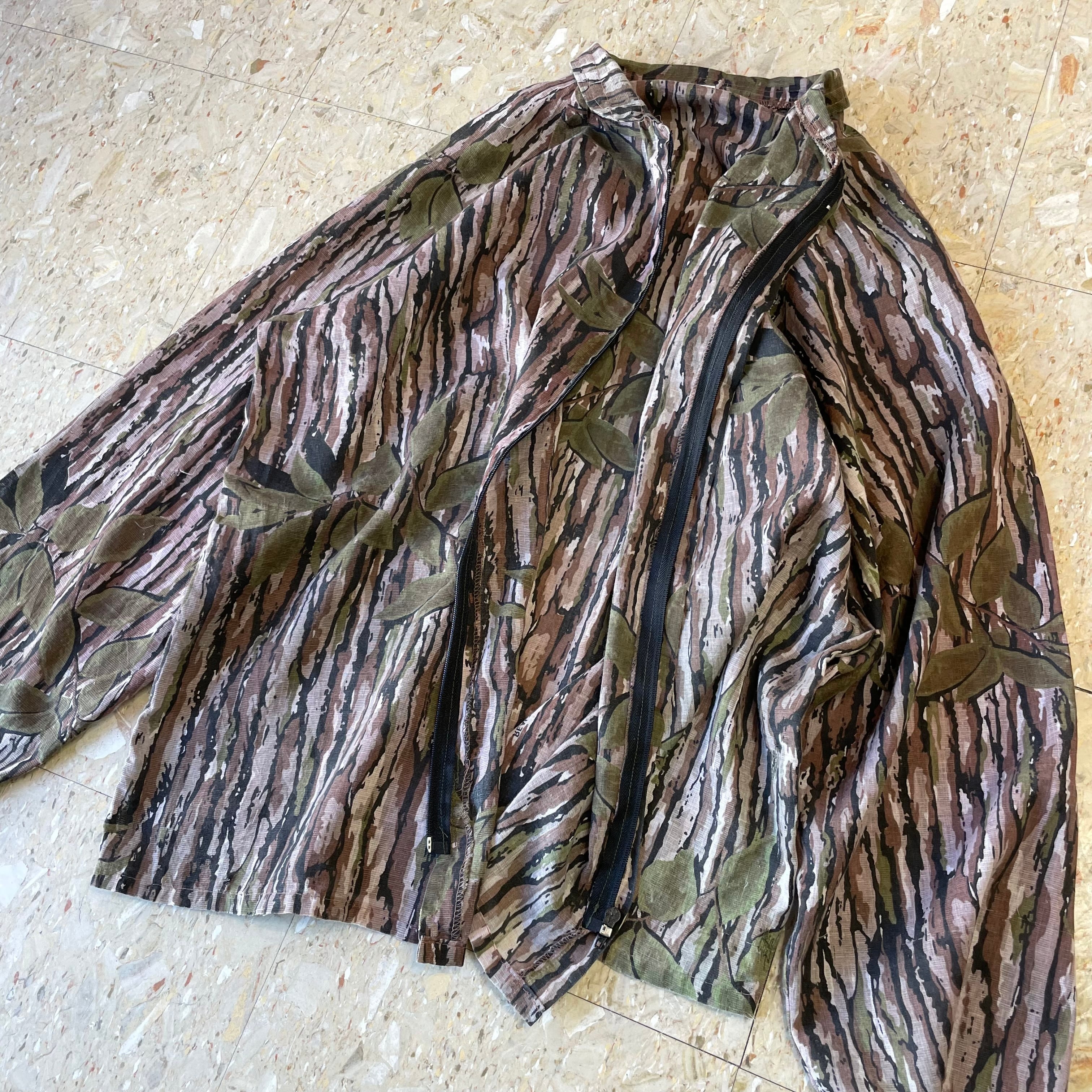 80s〜 USA製 【リアルツリーカモ】 フルジップ シャツジャケット シアー素材 size.XL