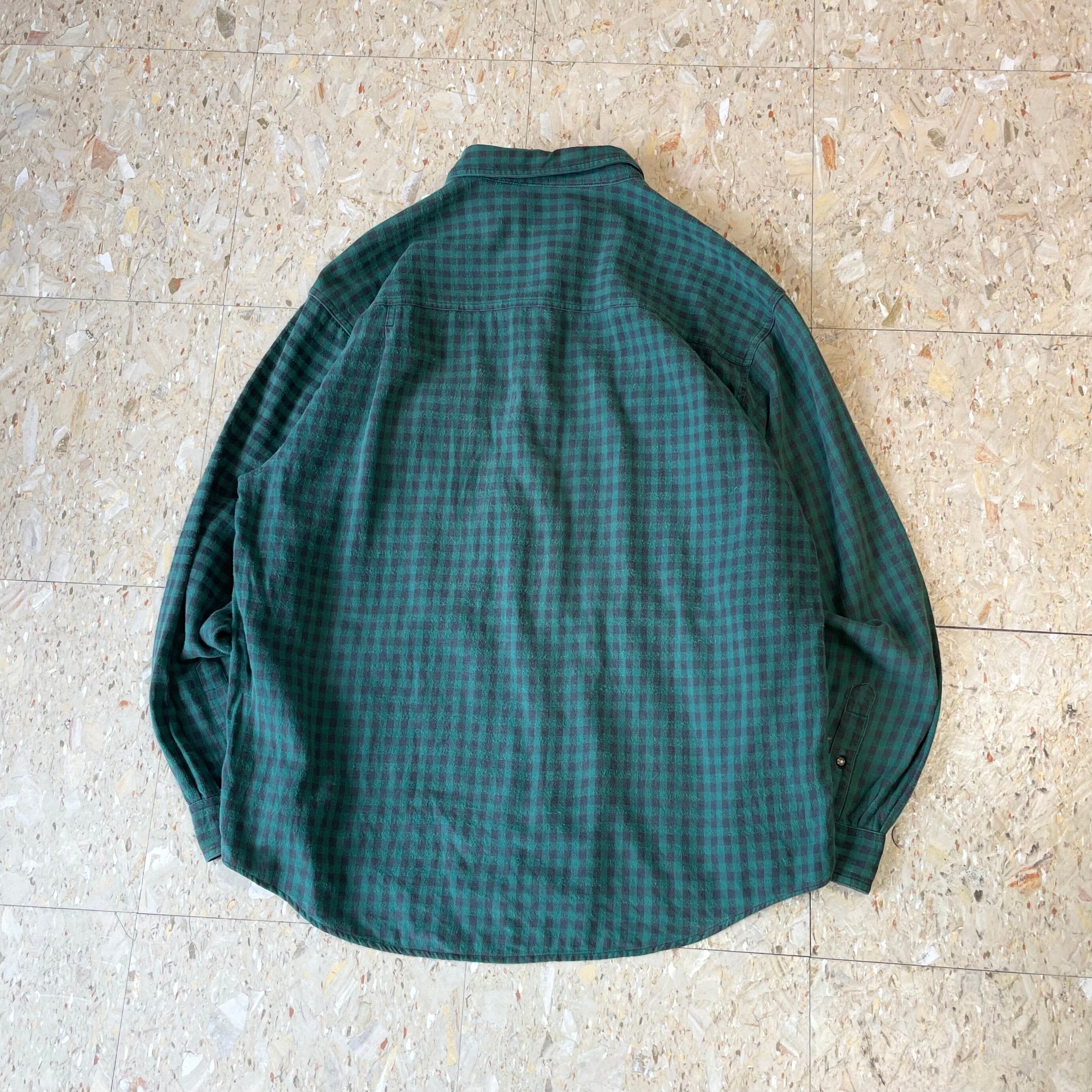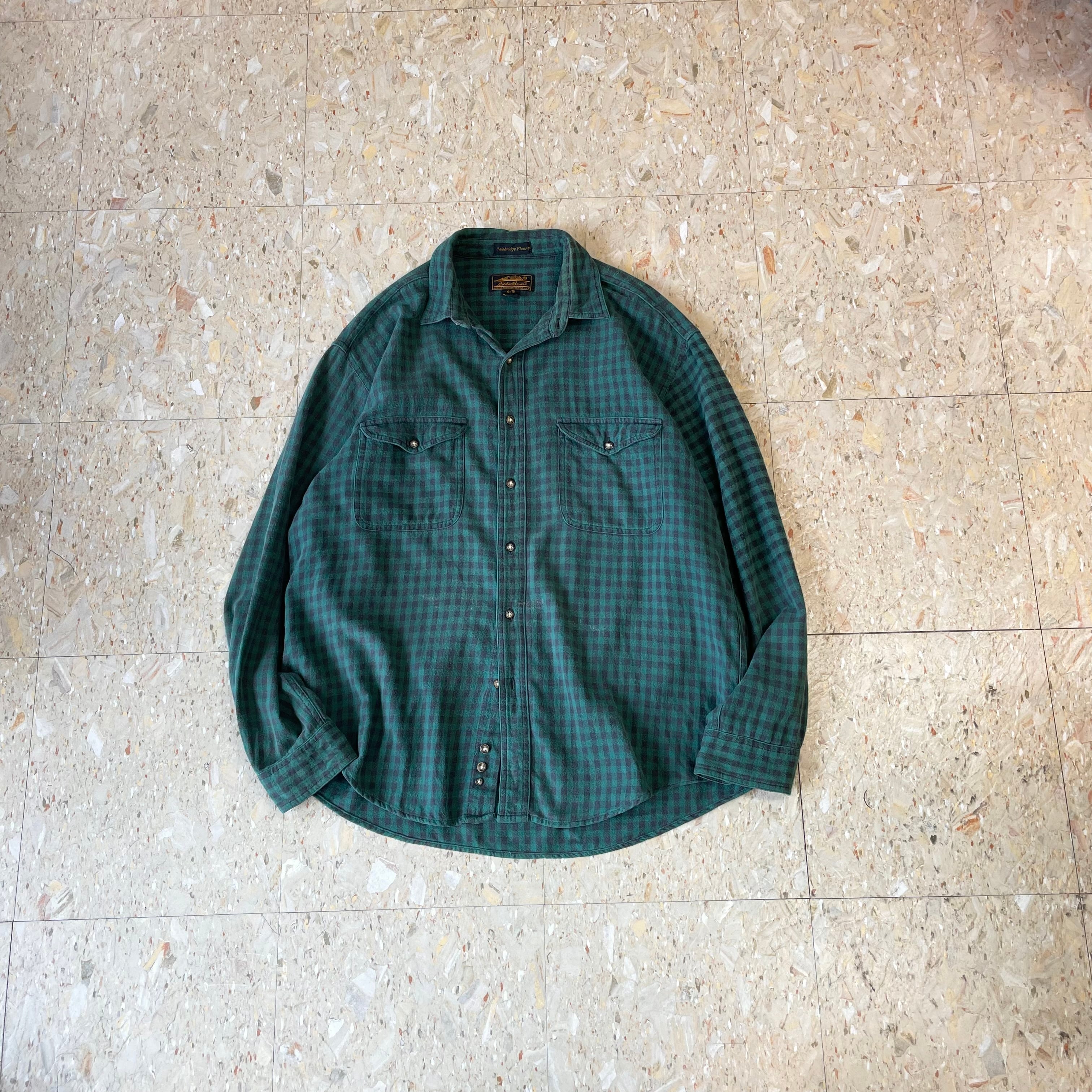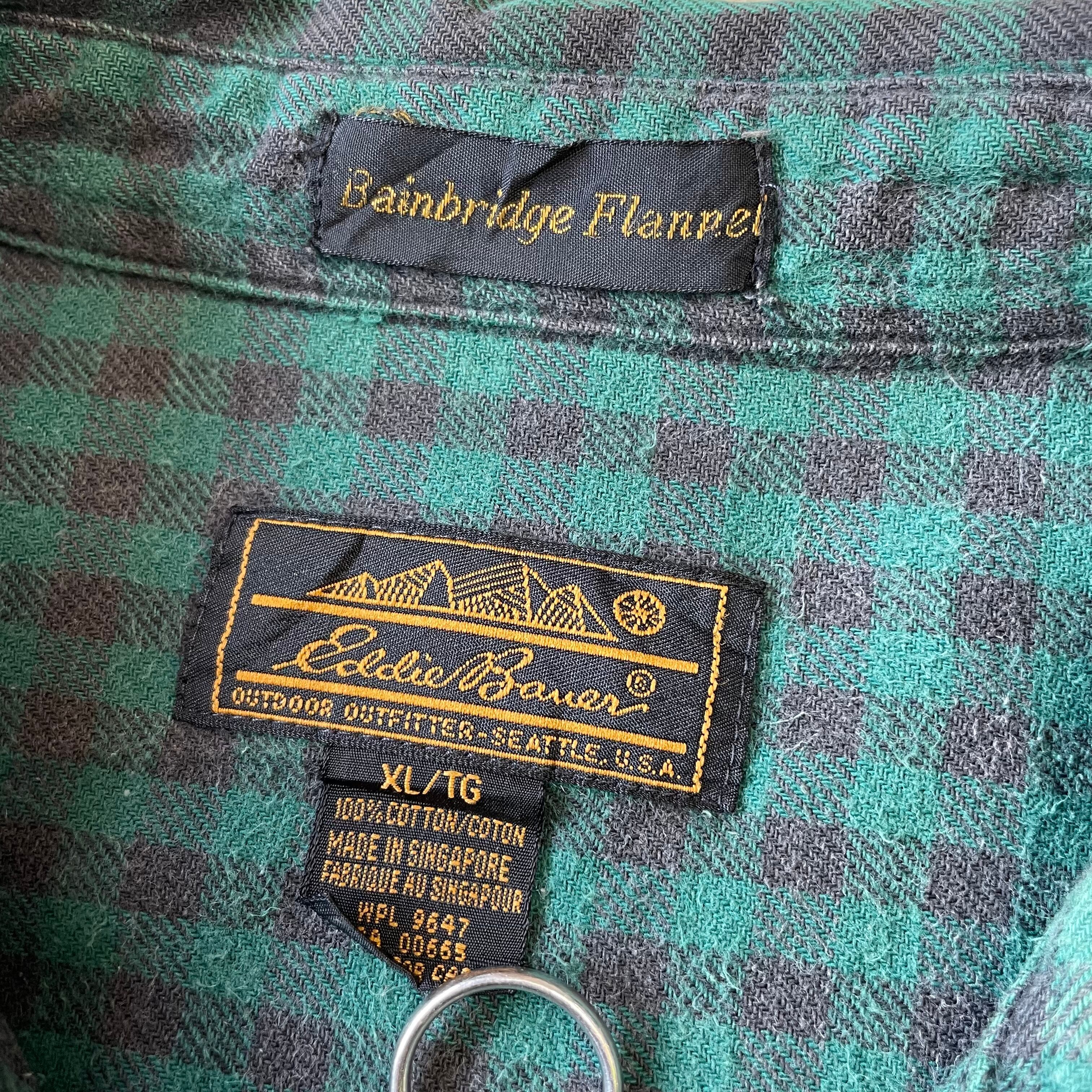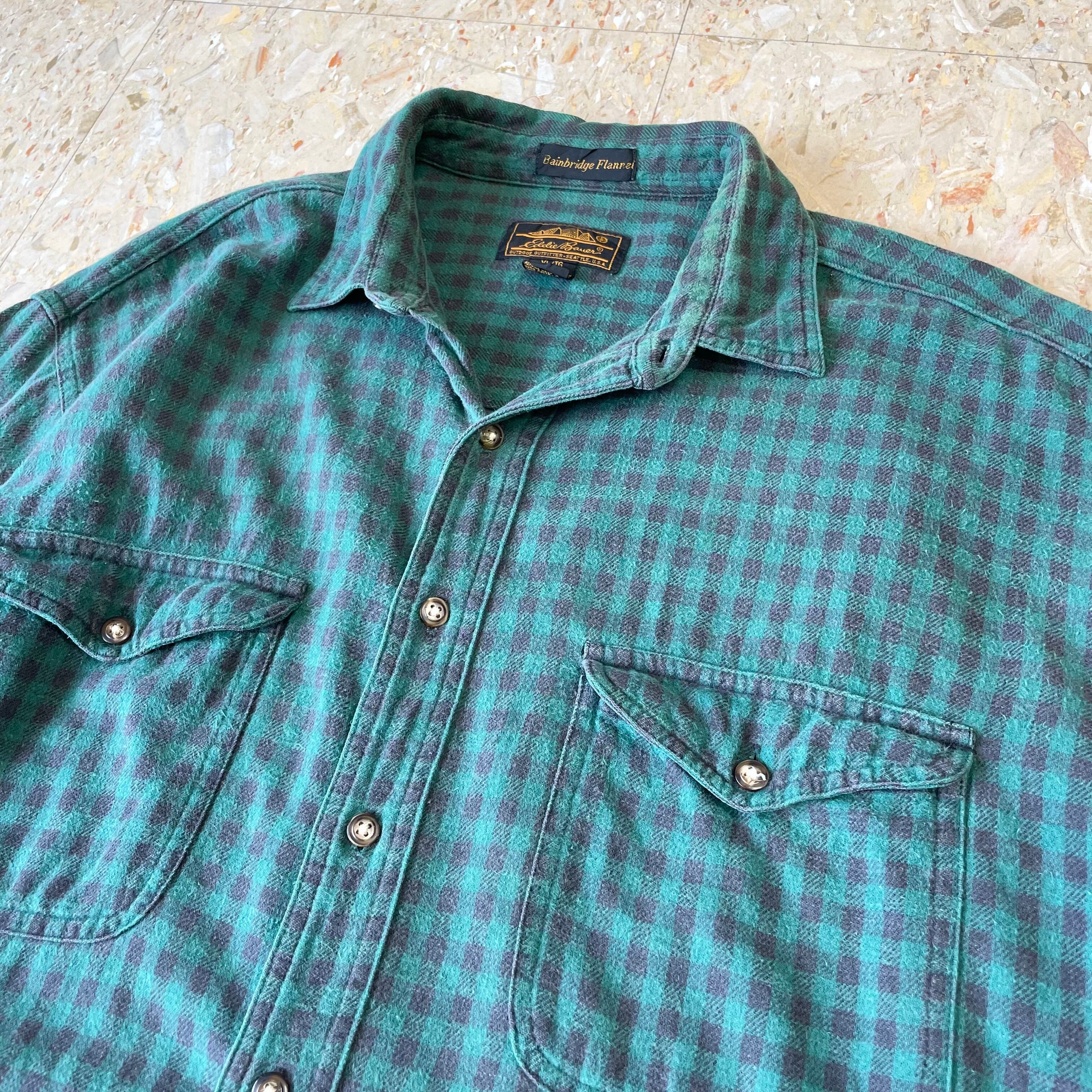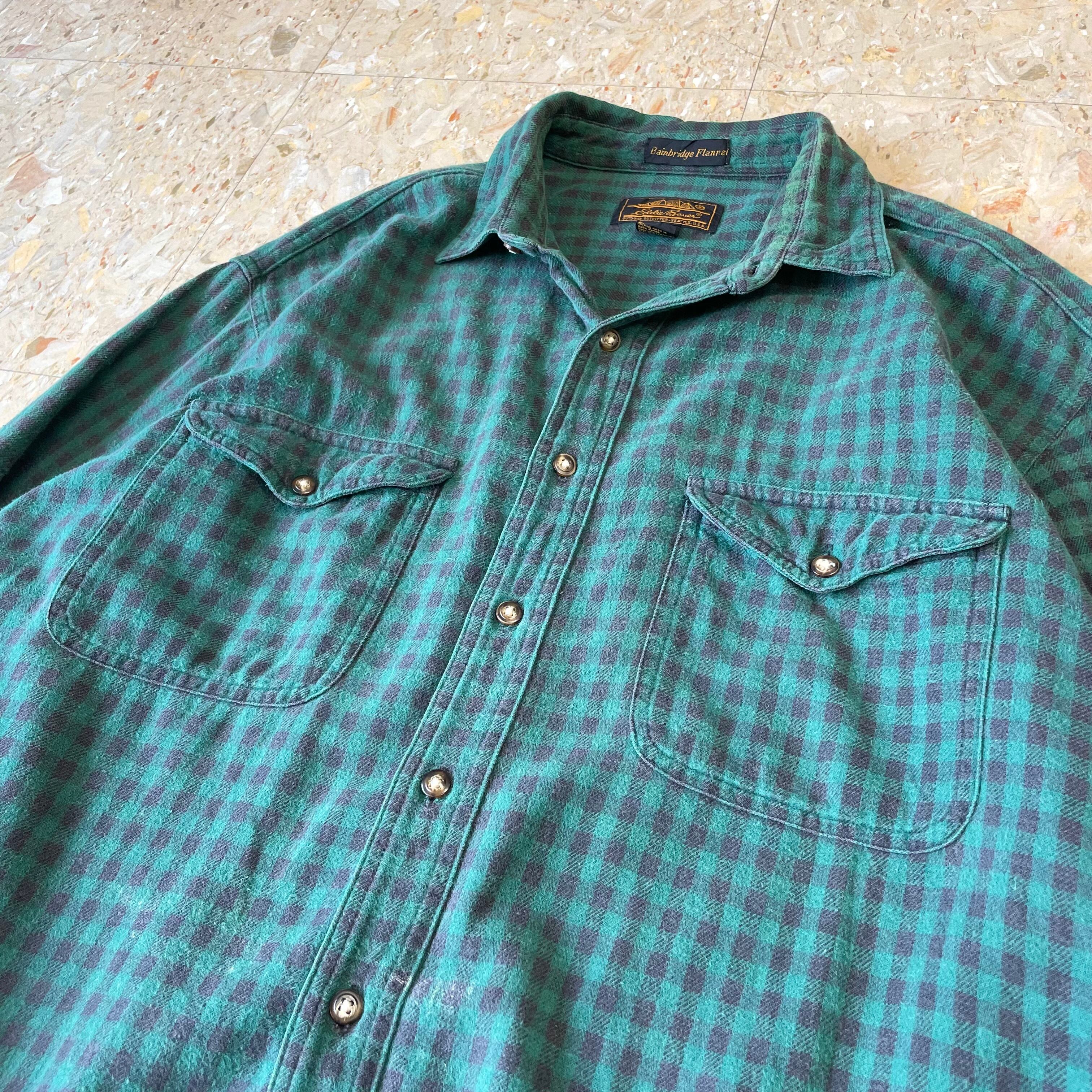 90s 【Eddie Bauer】 エディーバウアー 黒タグ フラップダブルポケット ギンガムチェック フランネル シャツ size.XL