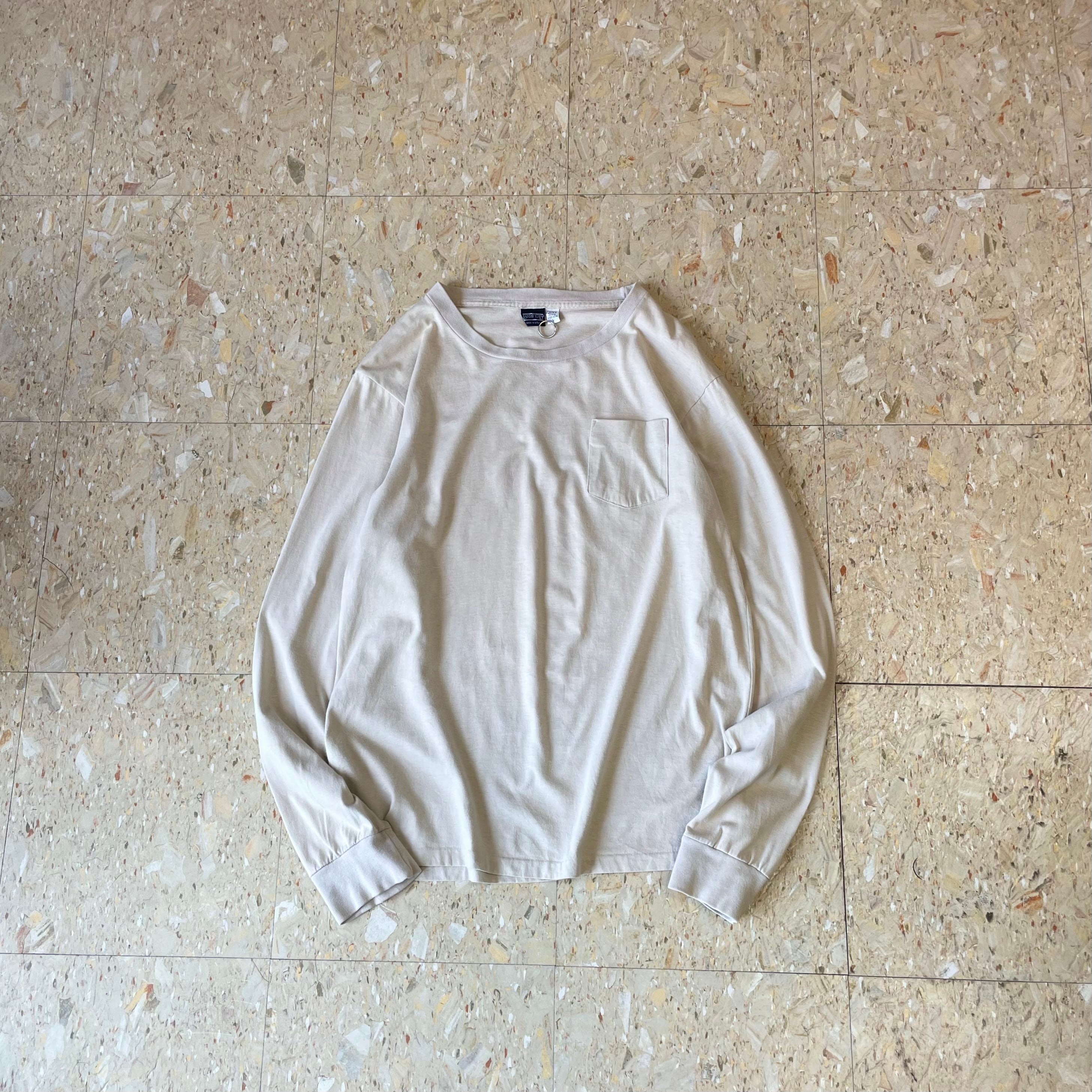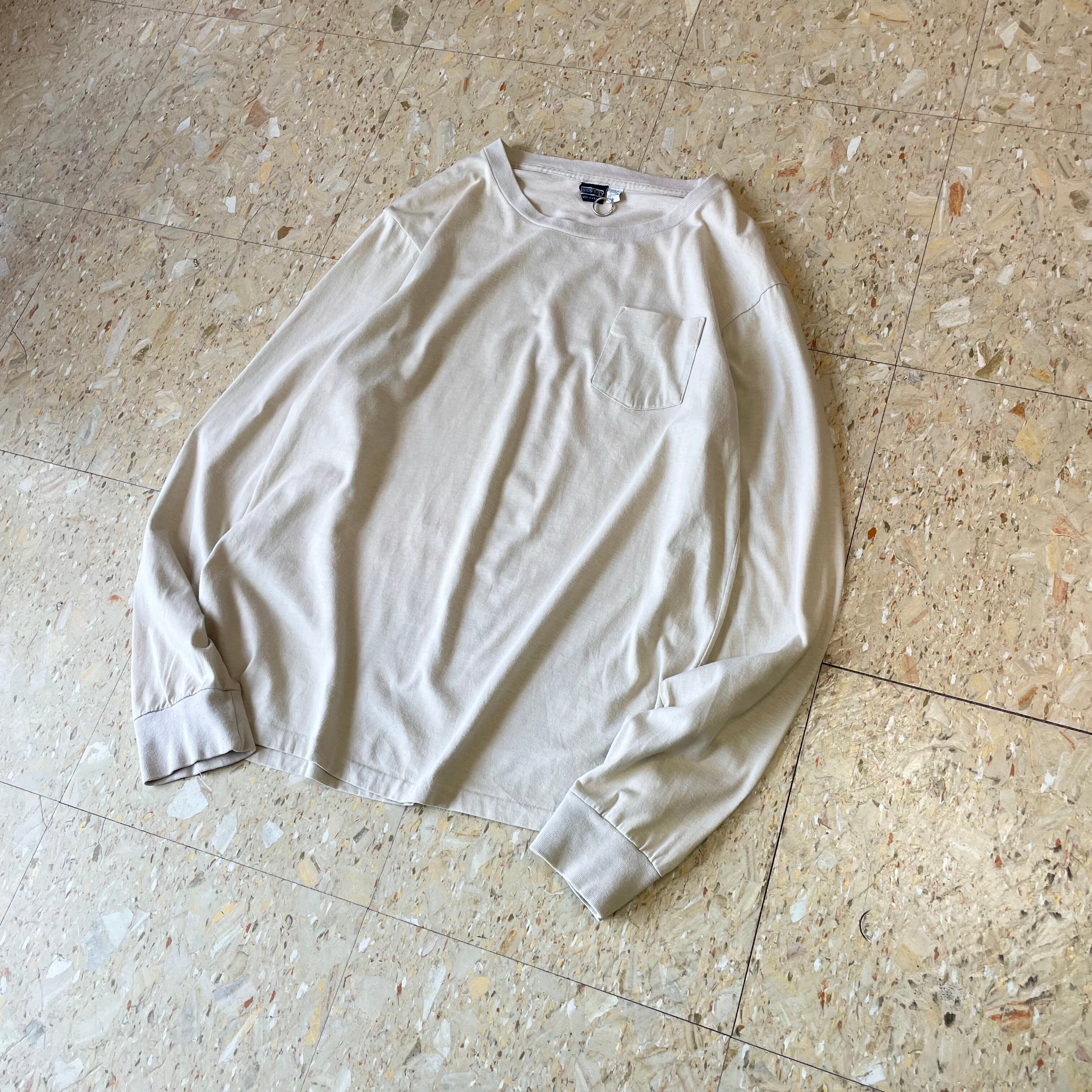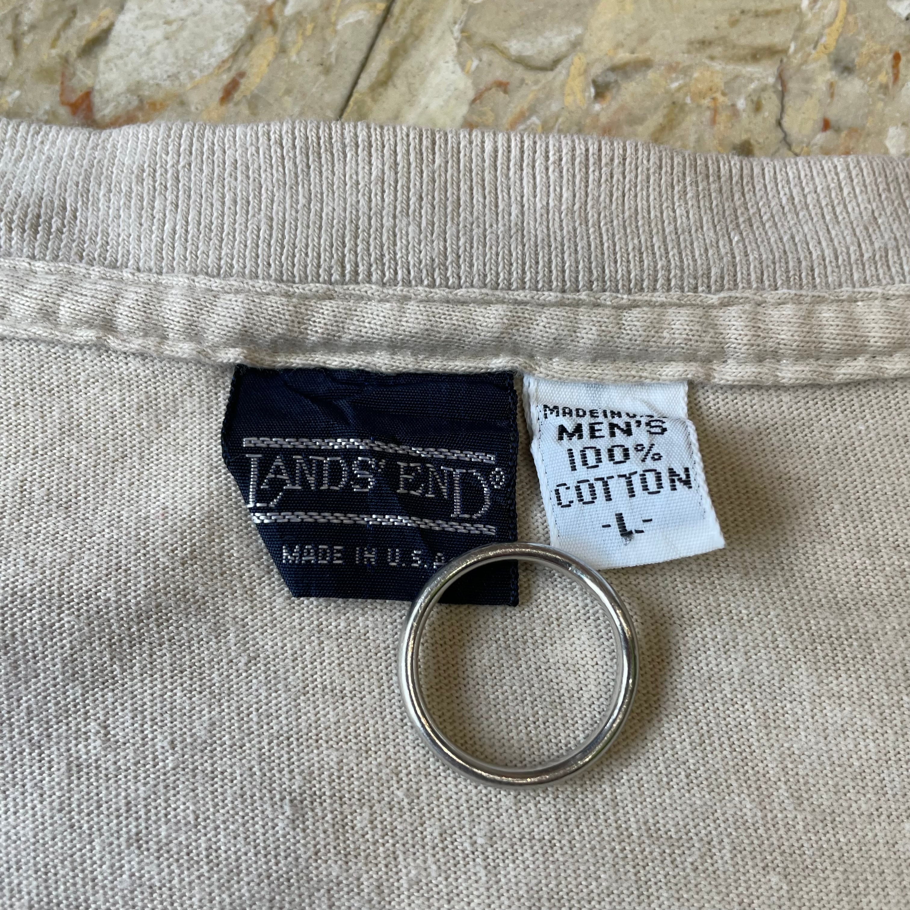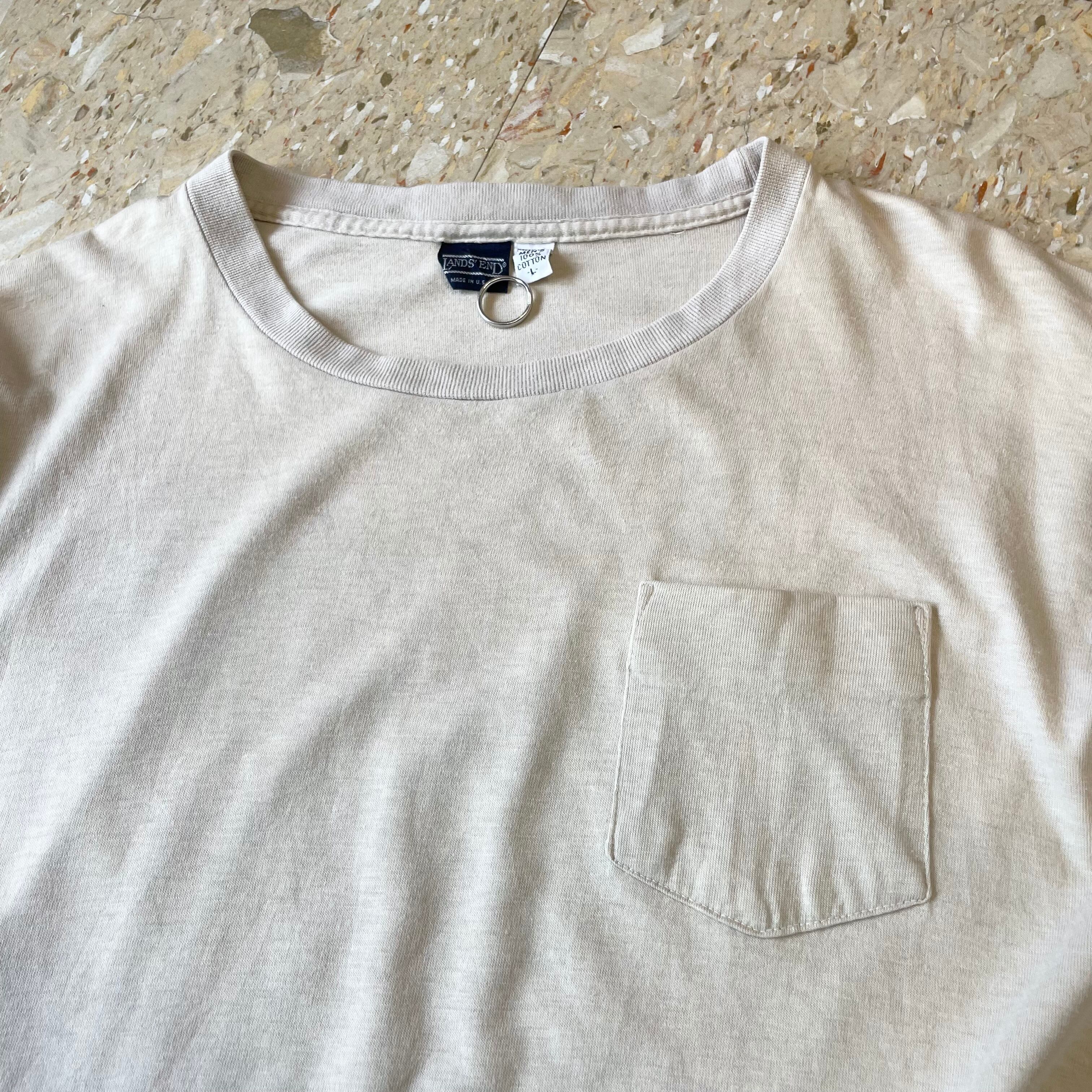 90s USA製 【LANDS' END】 ランズエンド 無地 胸ポケット カットソー ロンT size.L
