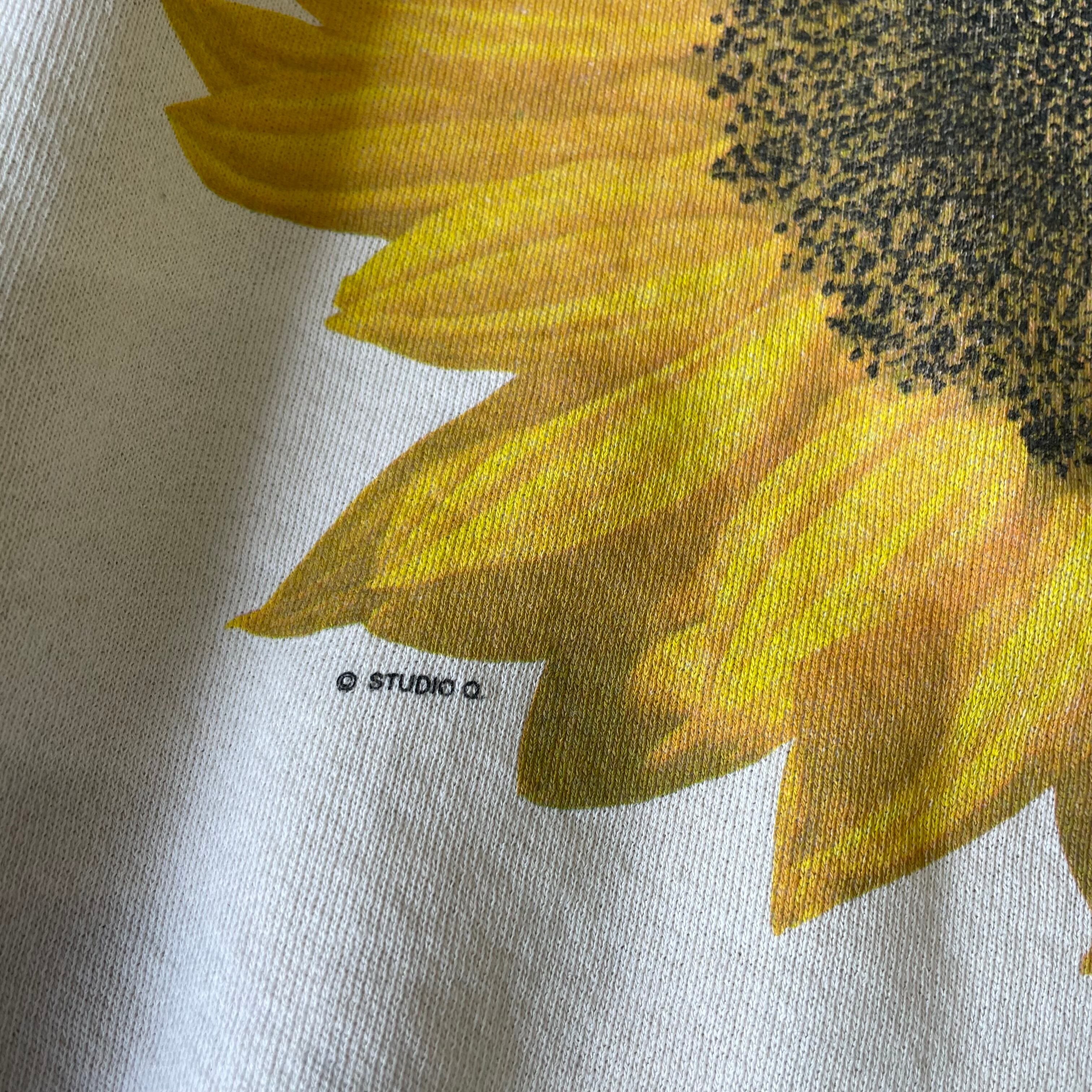 90s USA製 【Studio Q.】 スタジオQ ひまわり フラワープリント スウェット Lee size.L