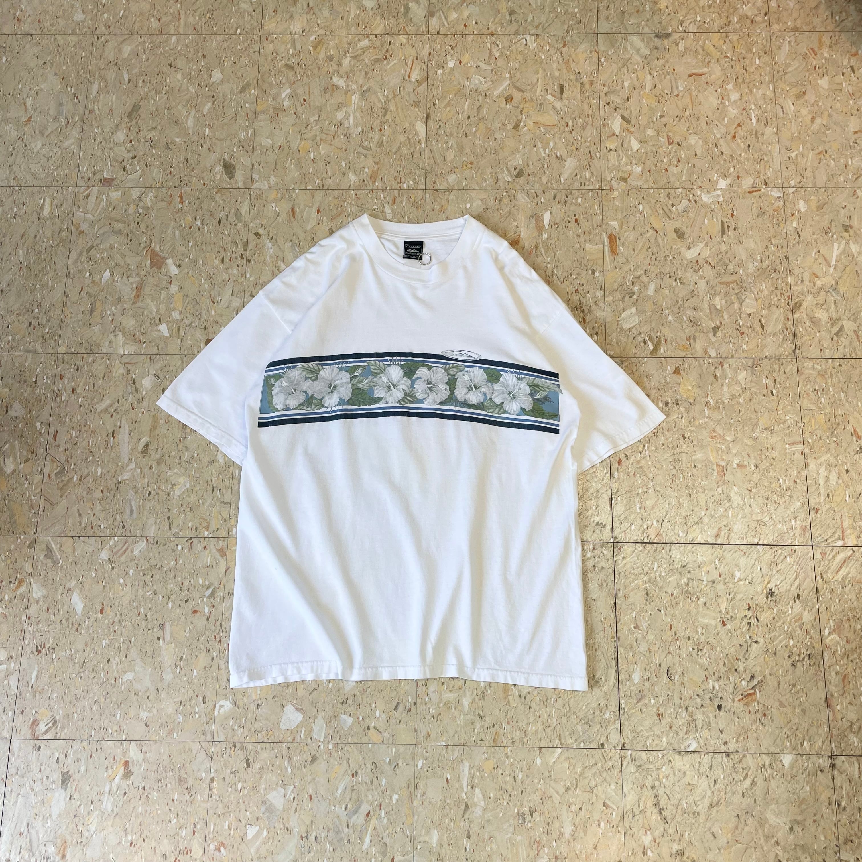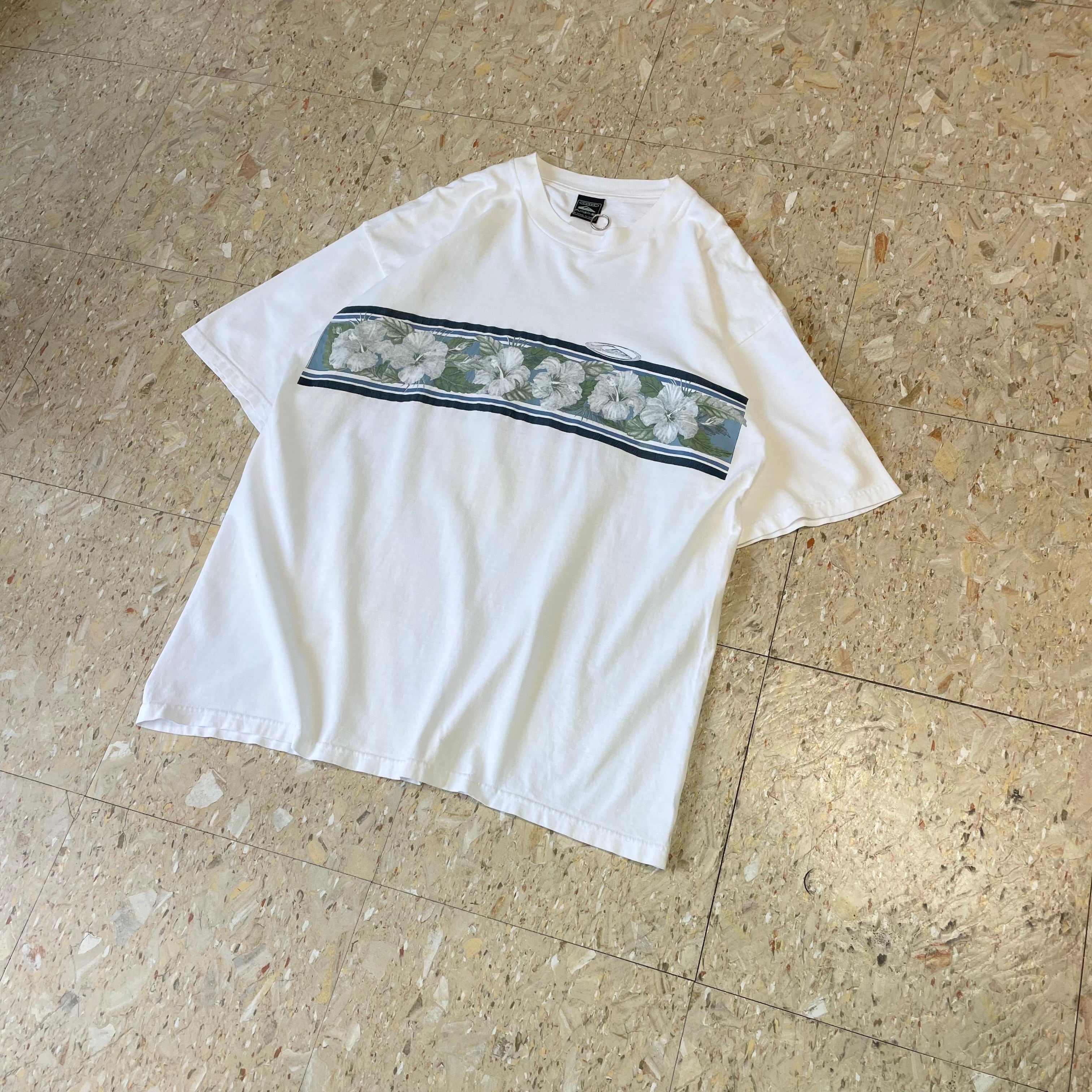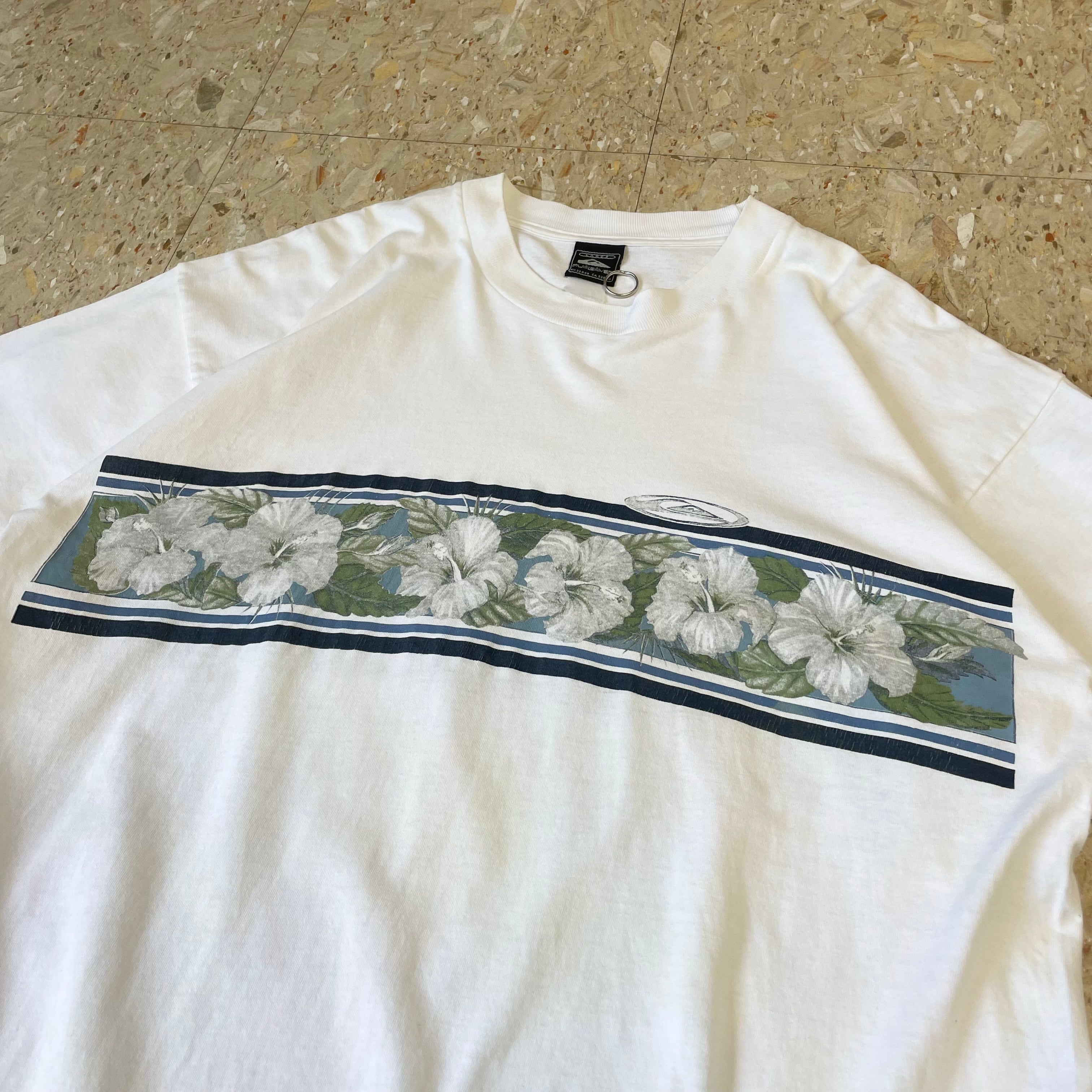 90s 【Quiksilver】 クイックシルバー ハイビスカス フラワープリント Tシャツ size.L