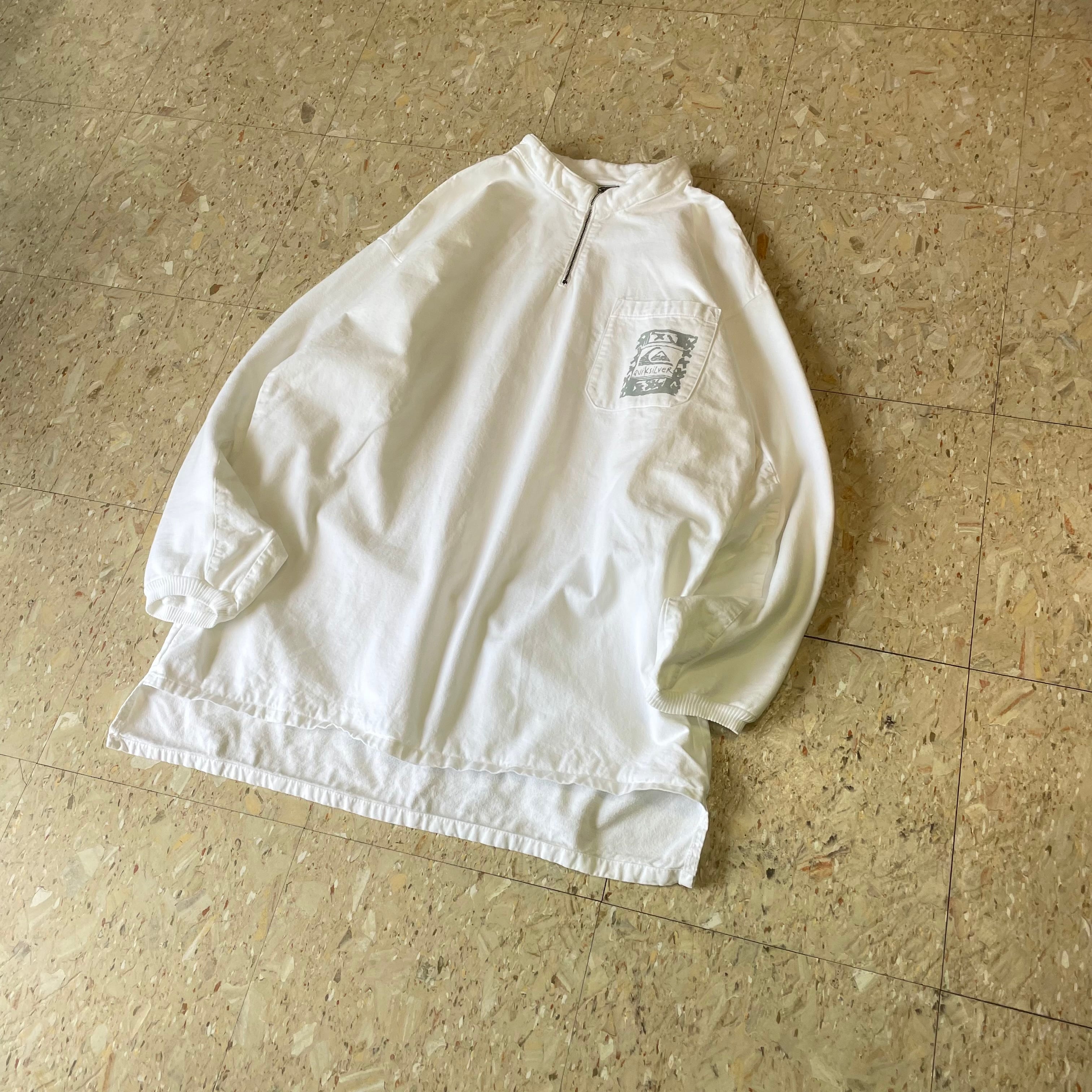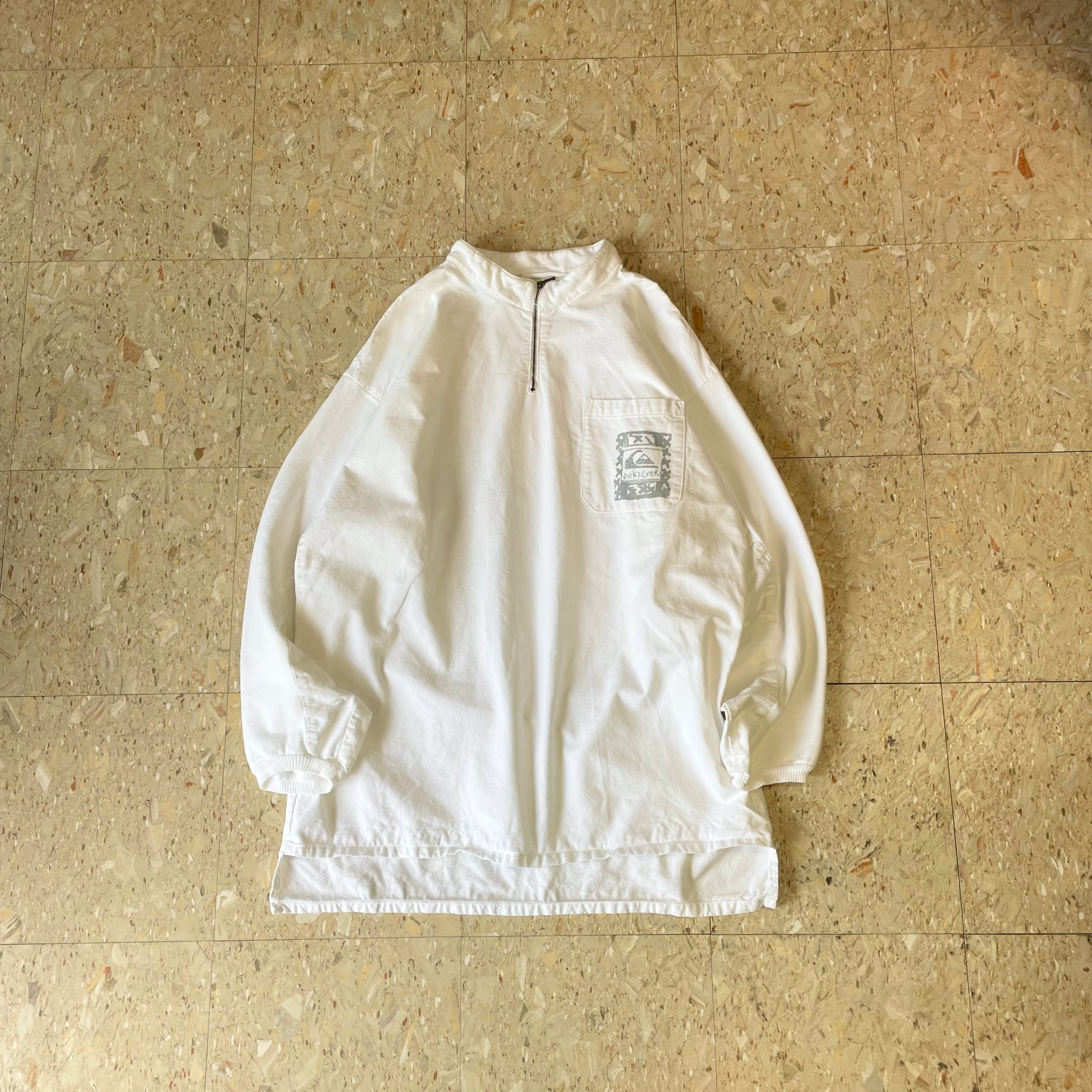 90s USA製 【Quiksilver】 クイックシルバー ハーフジップ プルオーバー スモック ホワイト size.XL