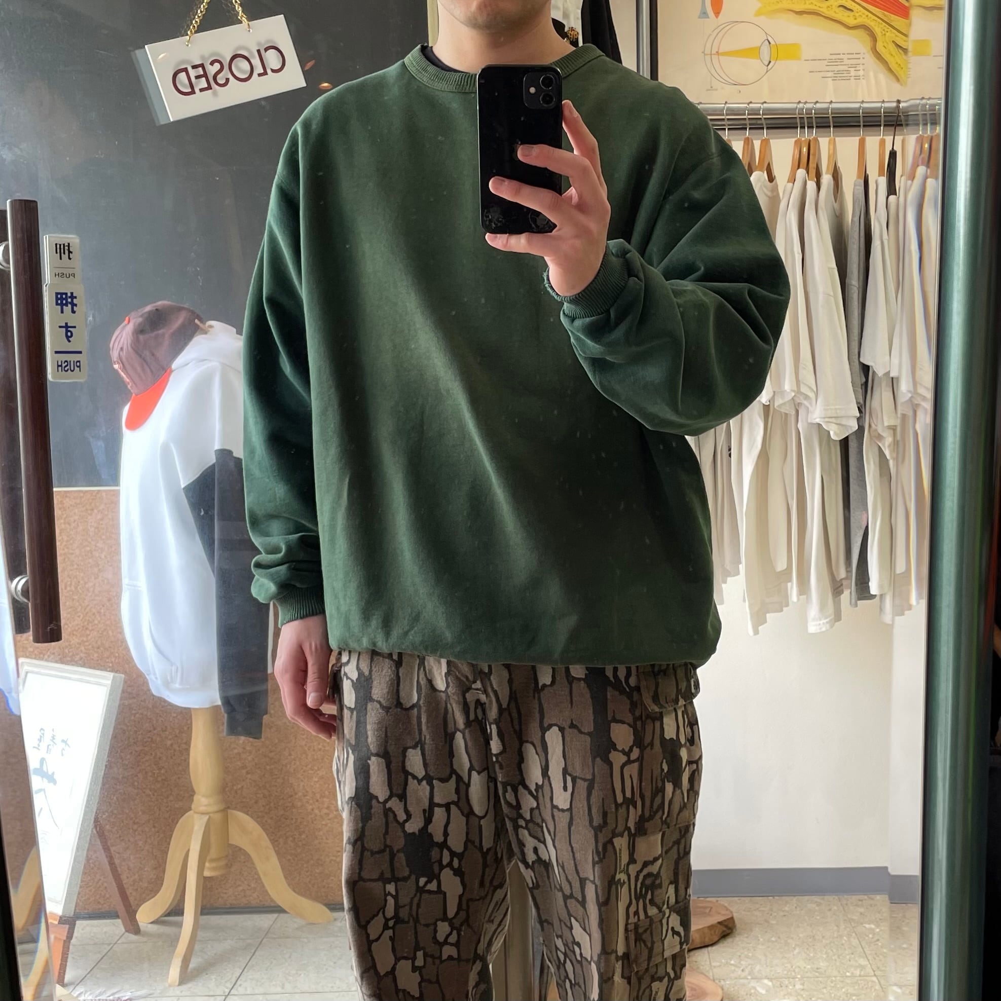 90s カナダ製 【WINDRIVER】 ウインドリバー 無地 スウェット ピグメント加工 グリーン size.L