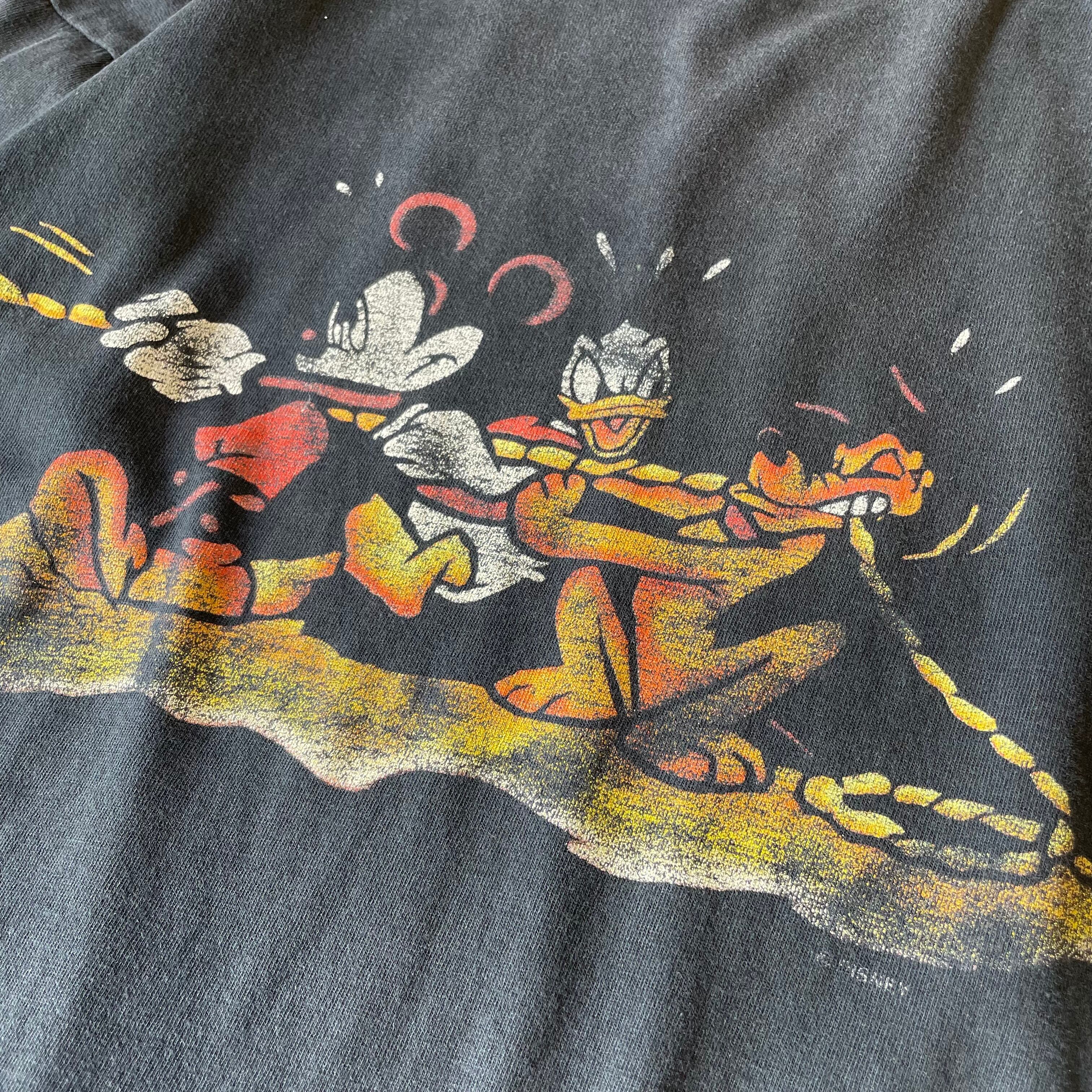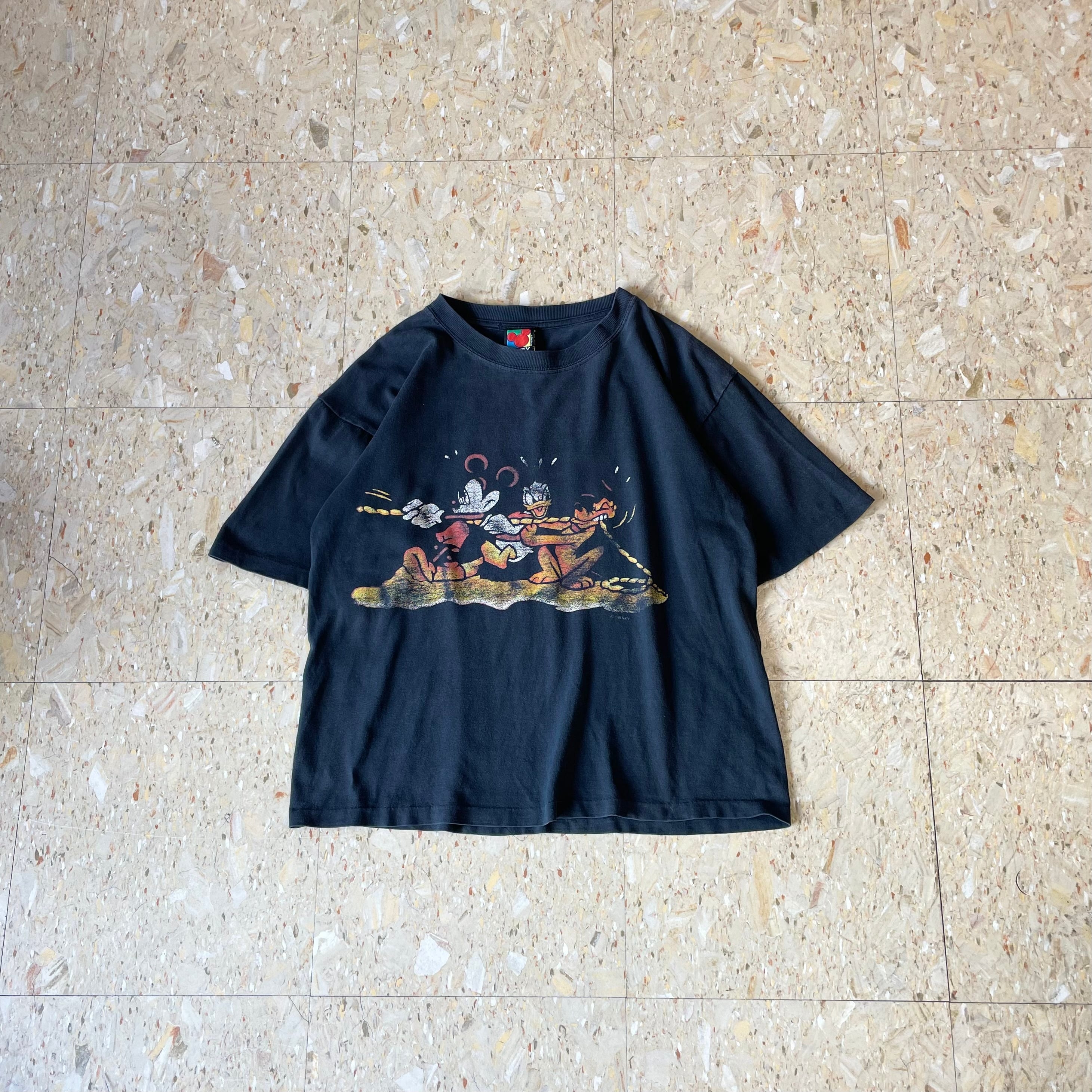 90s 【Disney】 ディズニー 綱引き 両面プリント Tシャツ ミッキー ドナルド ピート size.SM