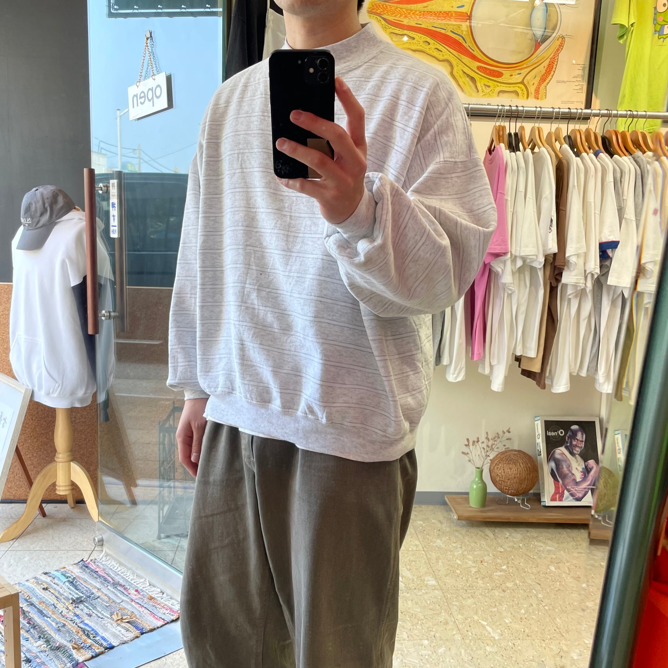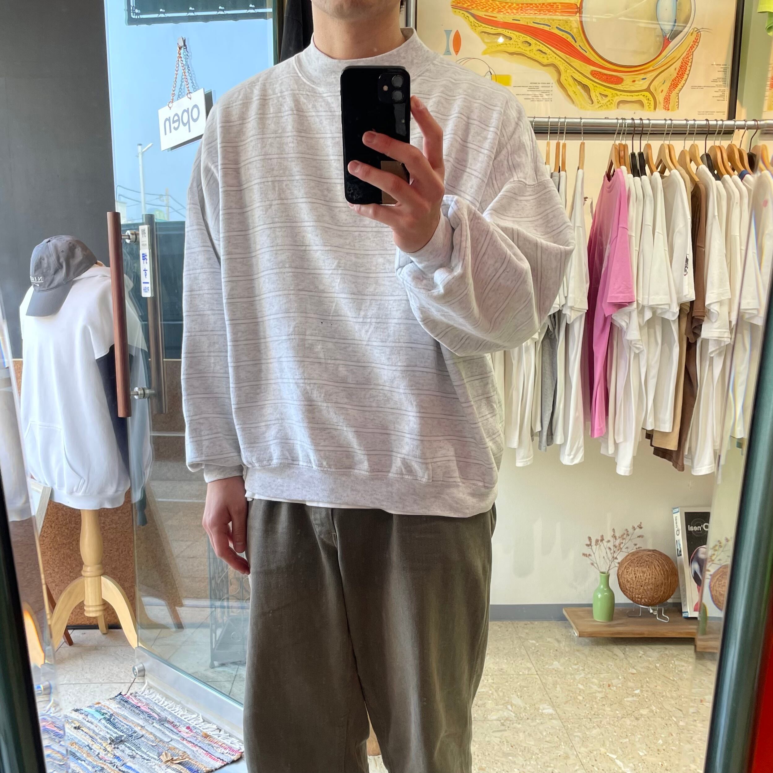 90s USA製 【OUTER REEF】 ボーダー スウェット ライトグレー size.XL