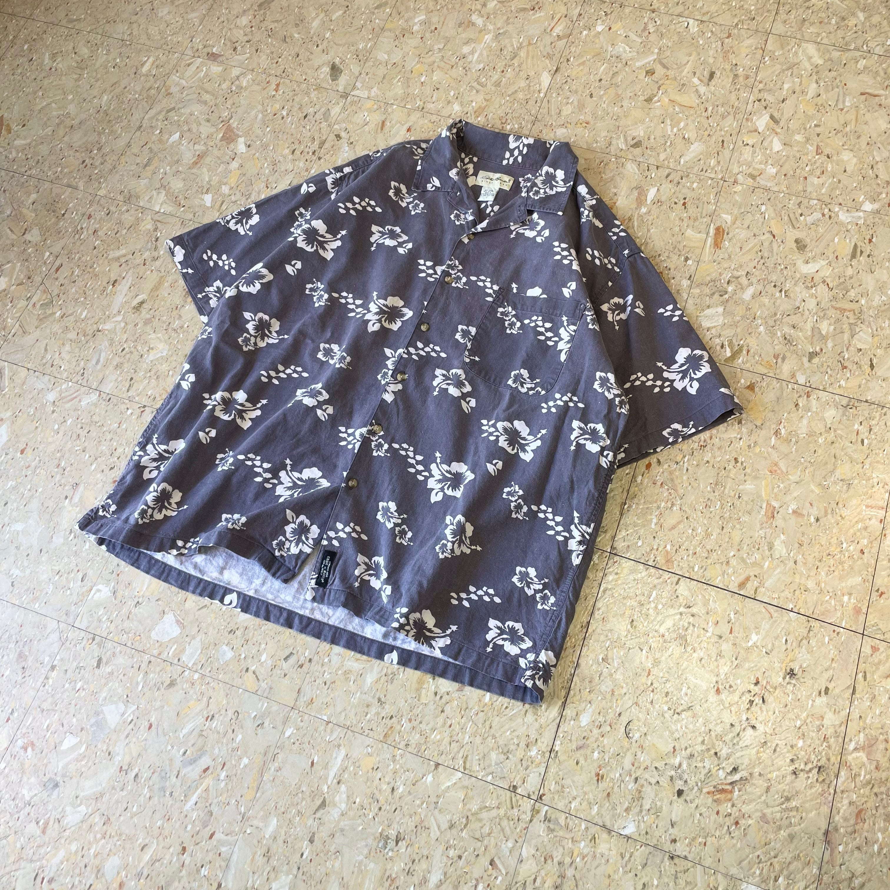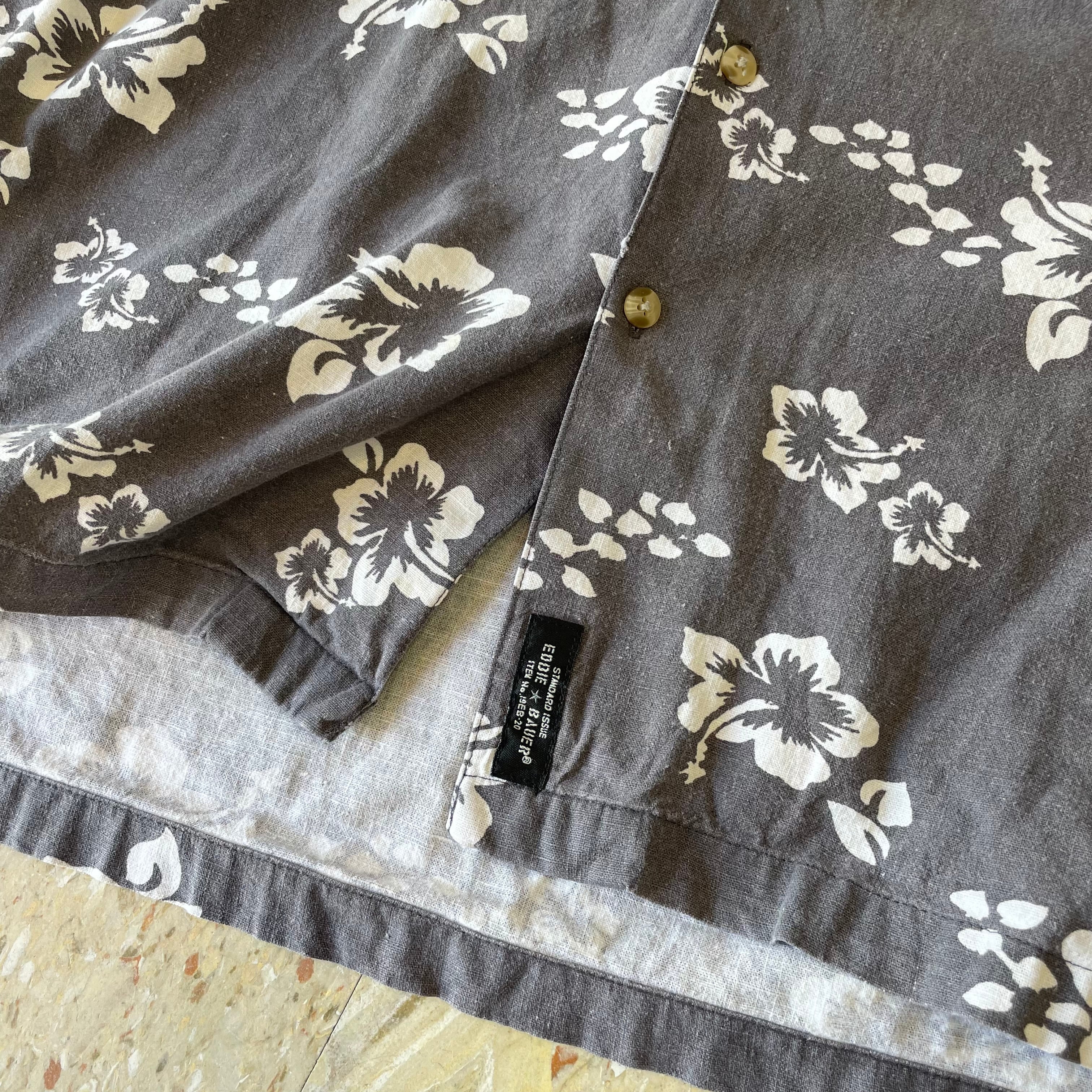 90s 【Eddie Bauer】 エディーバウアー 開襟 コットンリネン アロハシャツ ネイビー size.L
