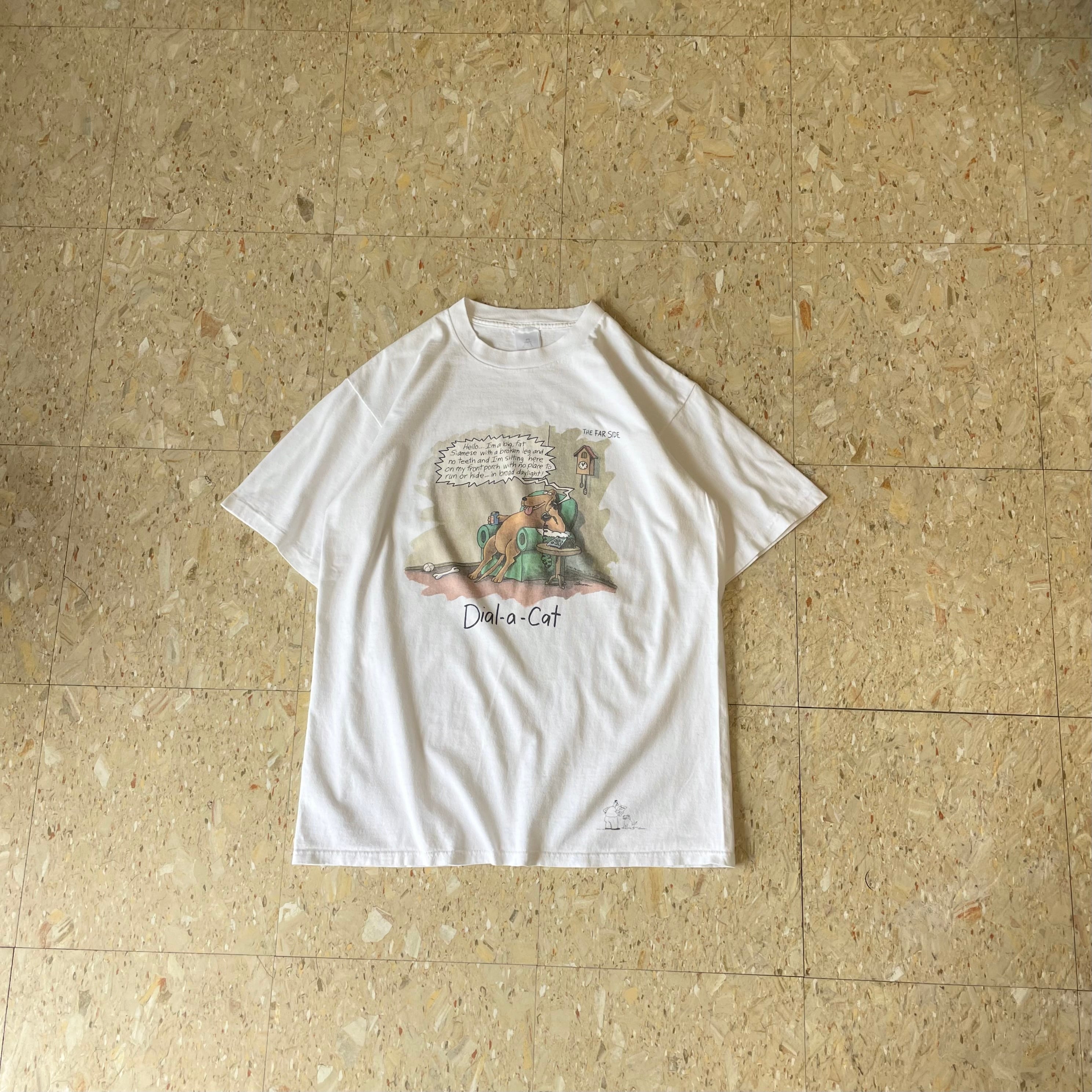 90s USA製 【THE FAR SIDE】 Gary Larson "Dial-a-Cat" 犬 Tシャツ size.L