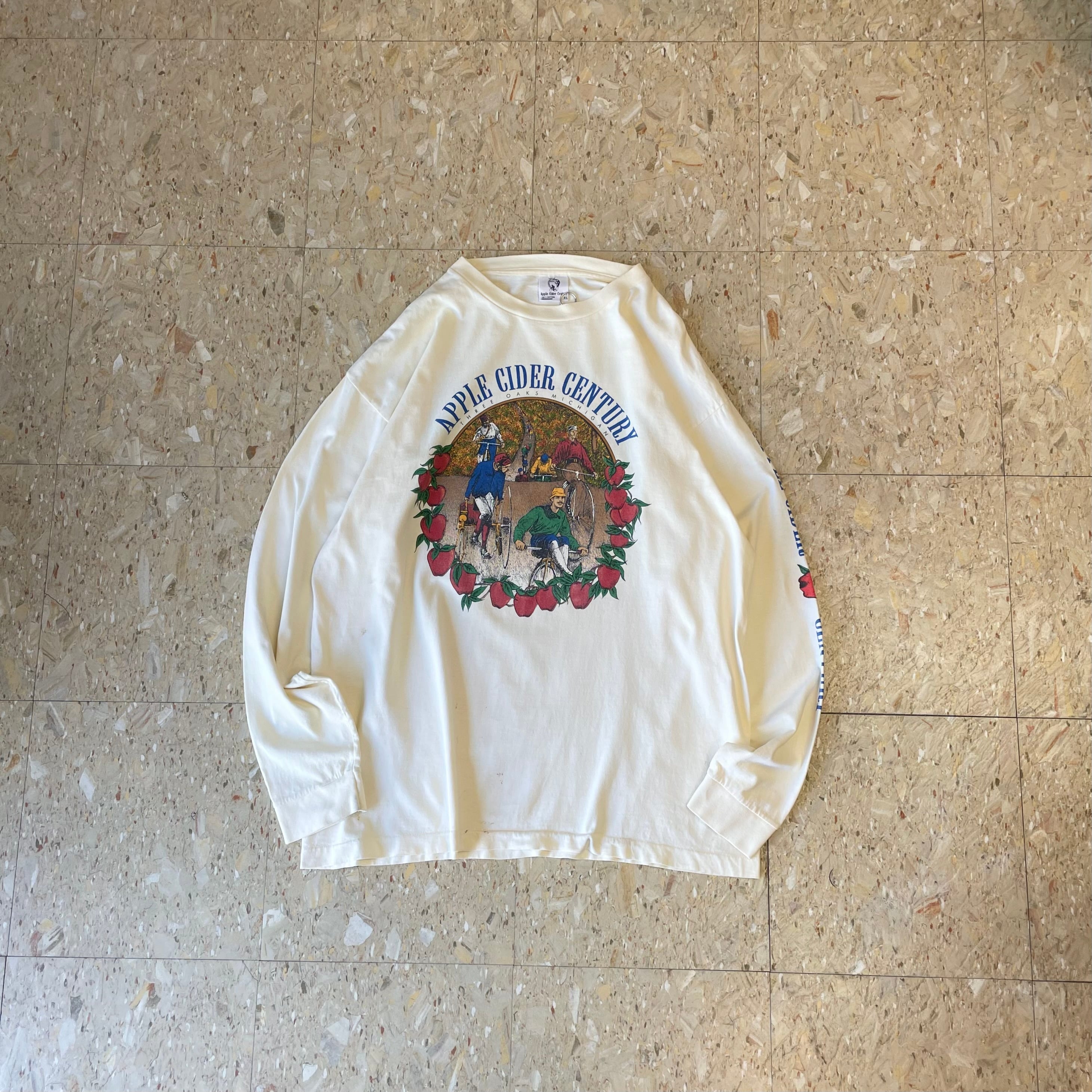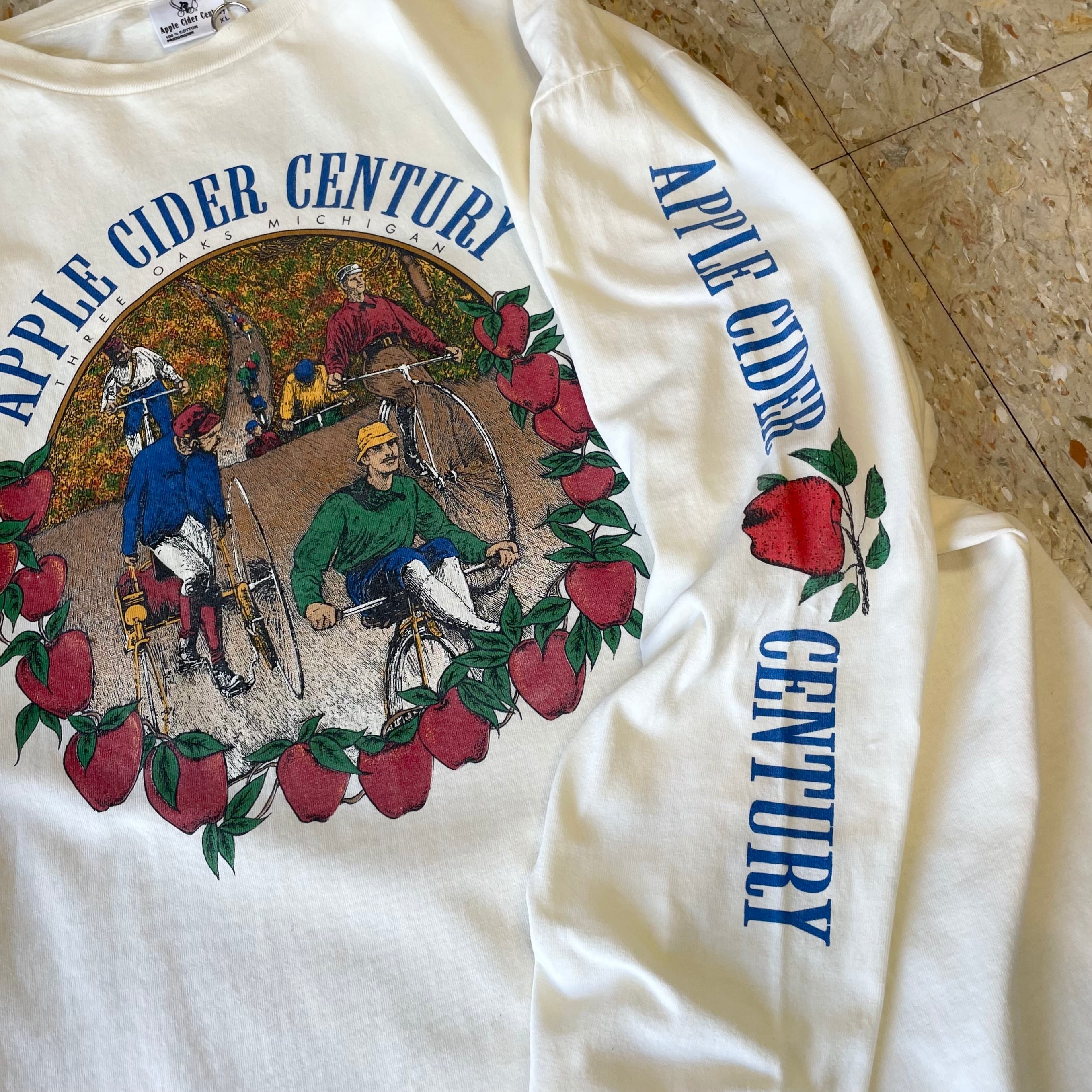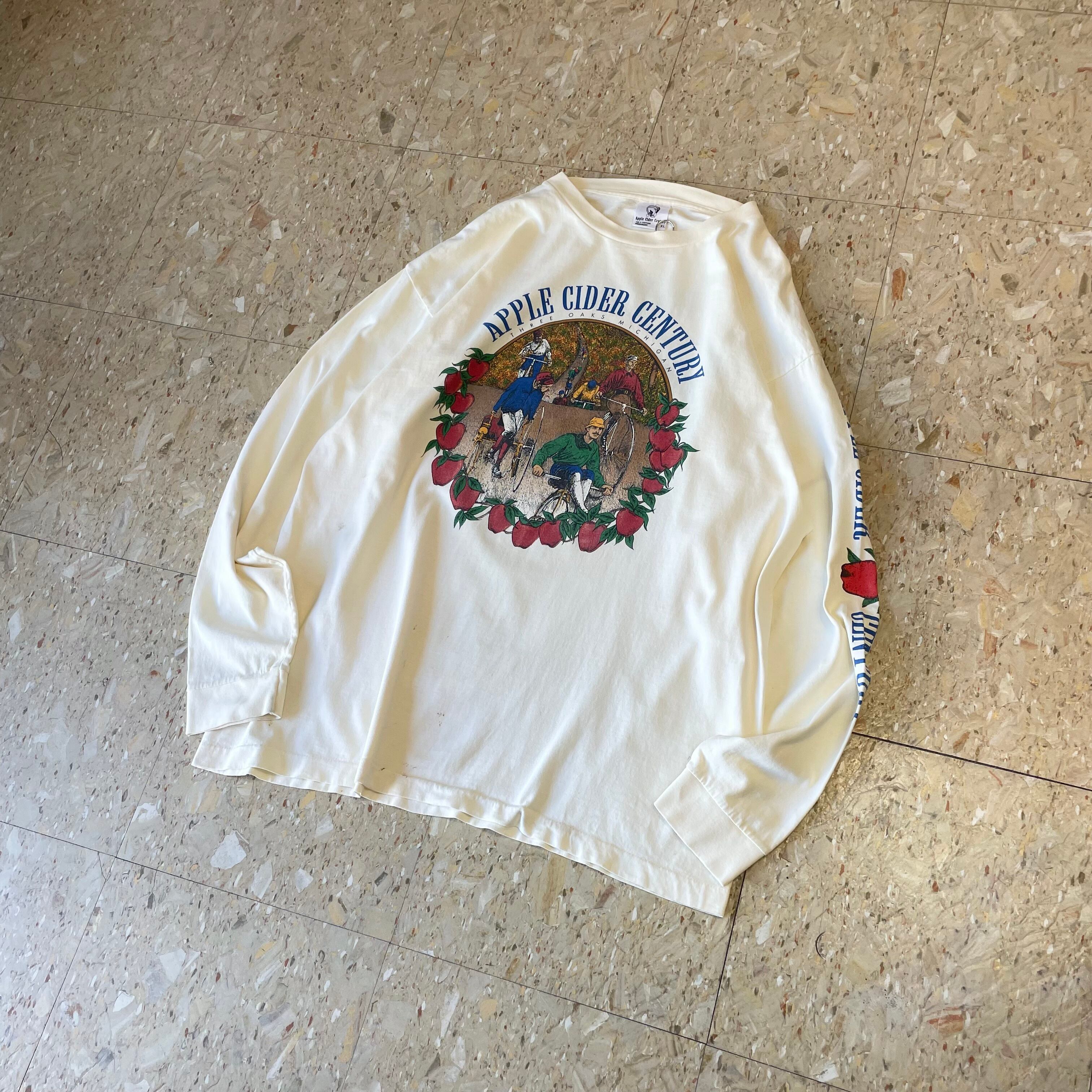 90s USA製 【りんごモチーフが印象的なミシガン州のサイクリングイベントのロンT】 "Apple cider century" 97年 size.XL