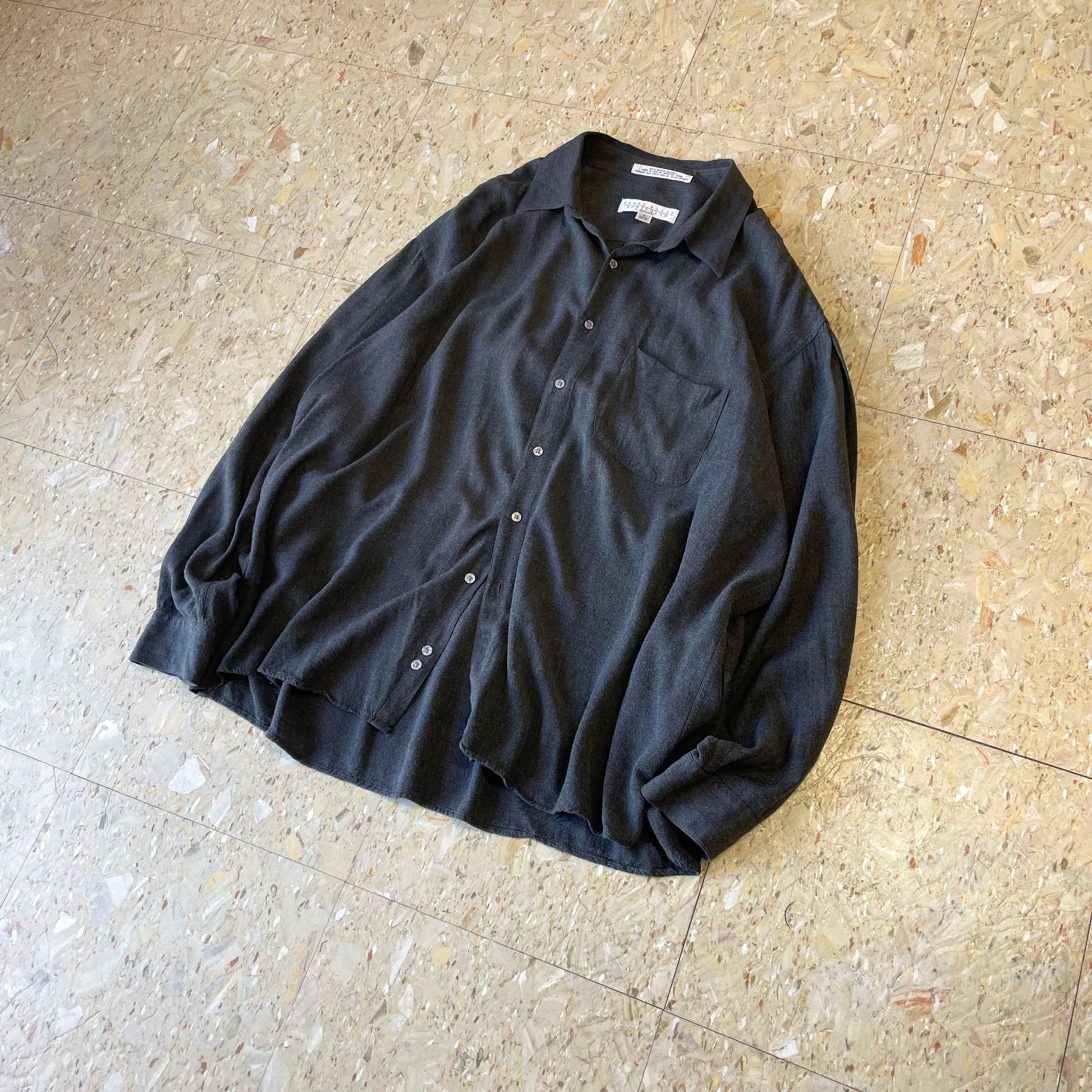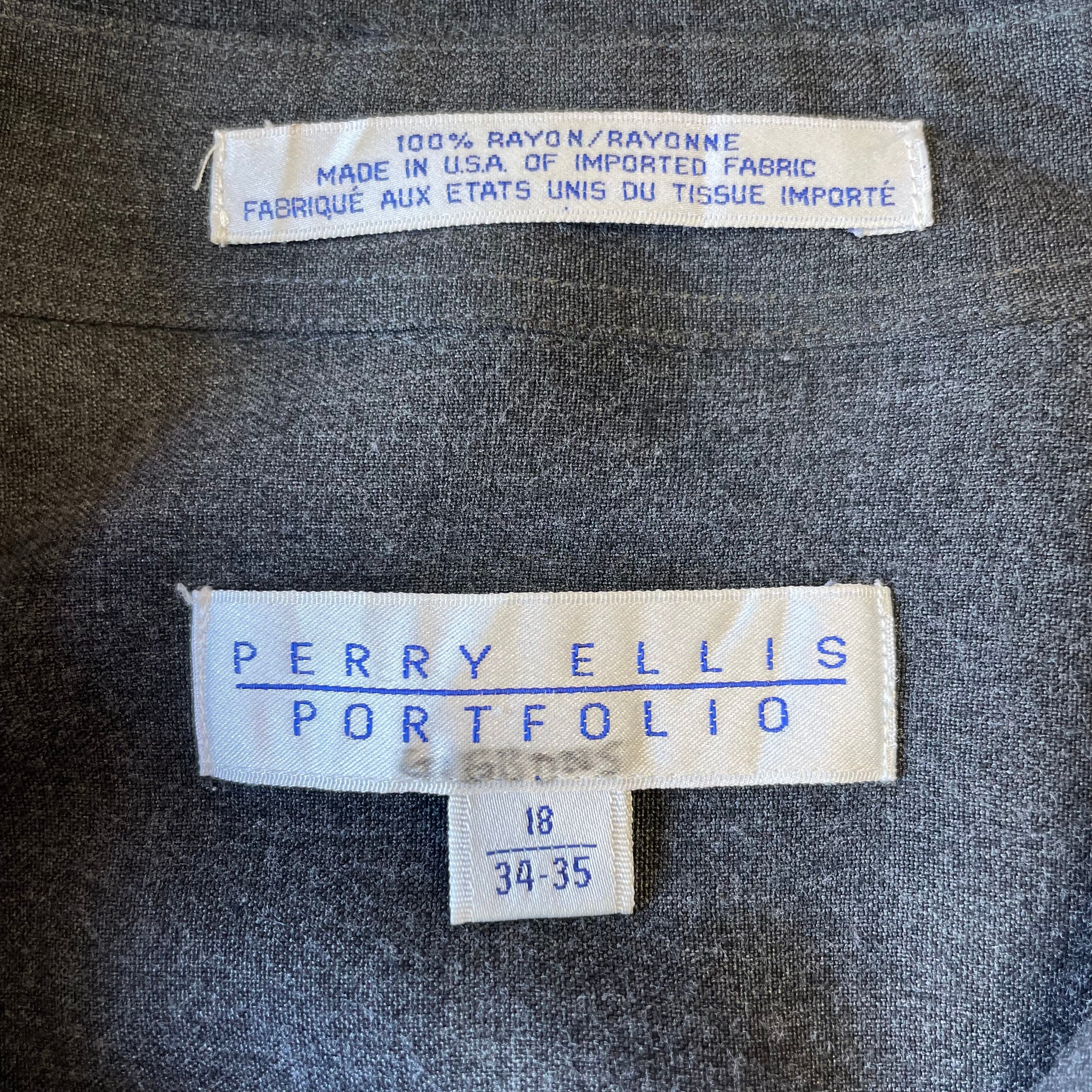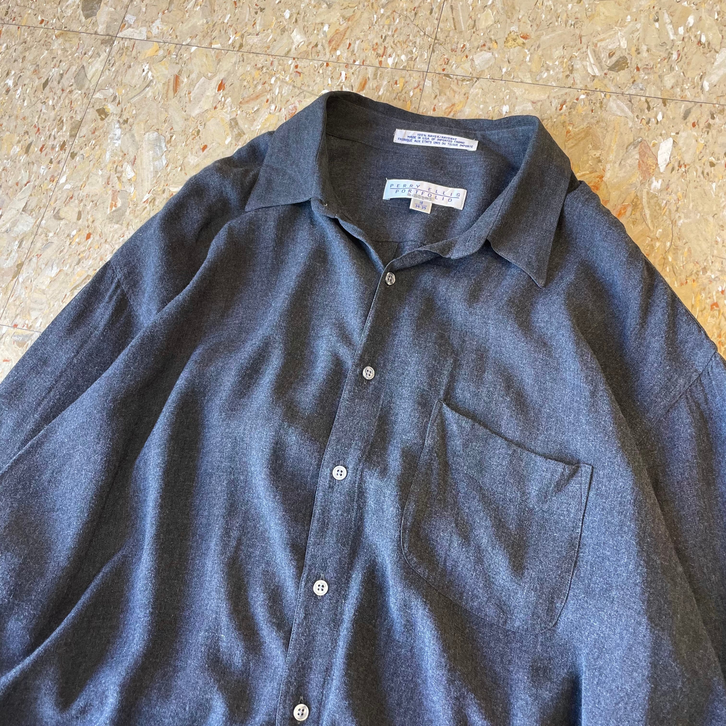 90s〜 【Perry Ellis】 ペリーエリス レーヨンシャツ ロングスリーブ 無地 レギュラーカラー size.18