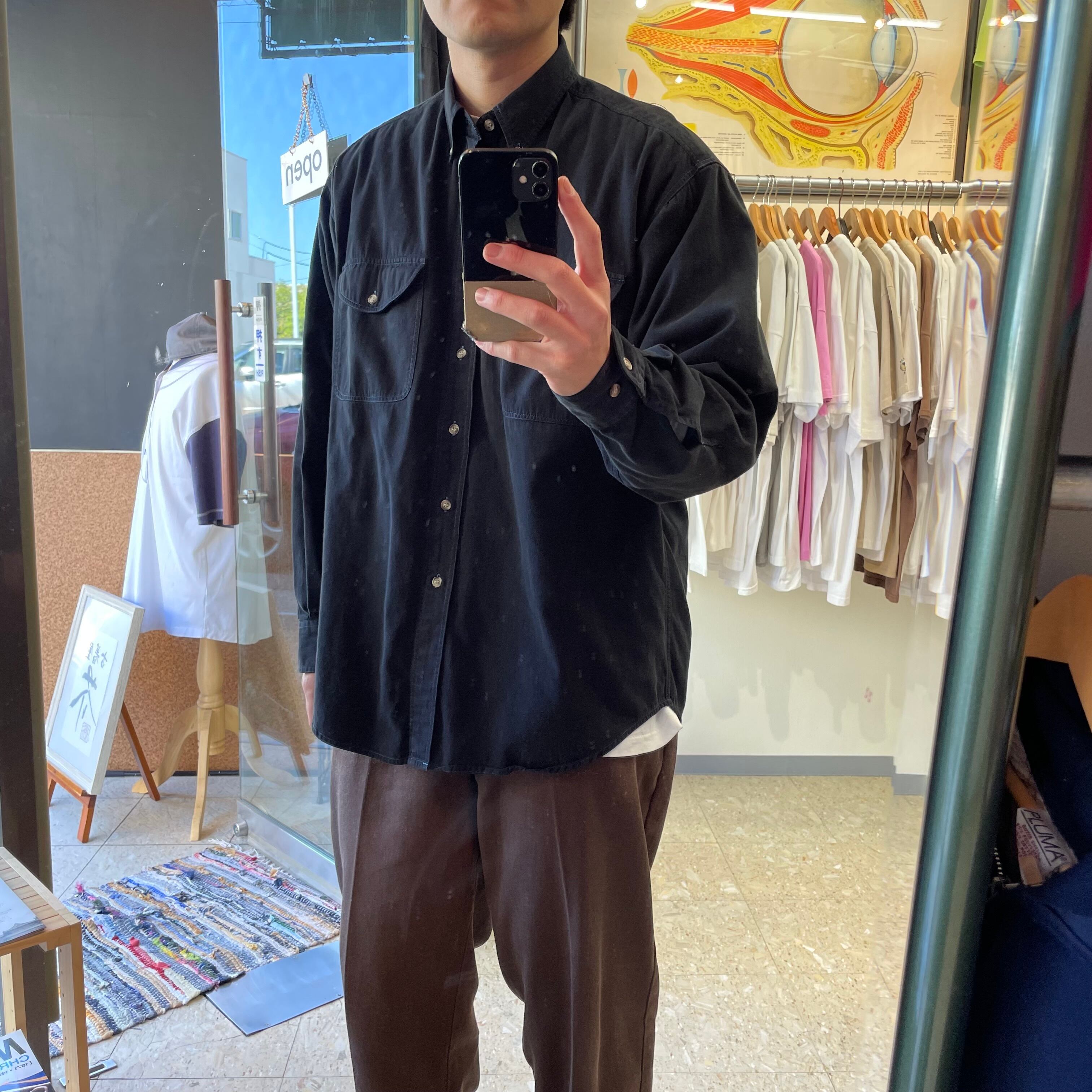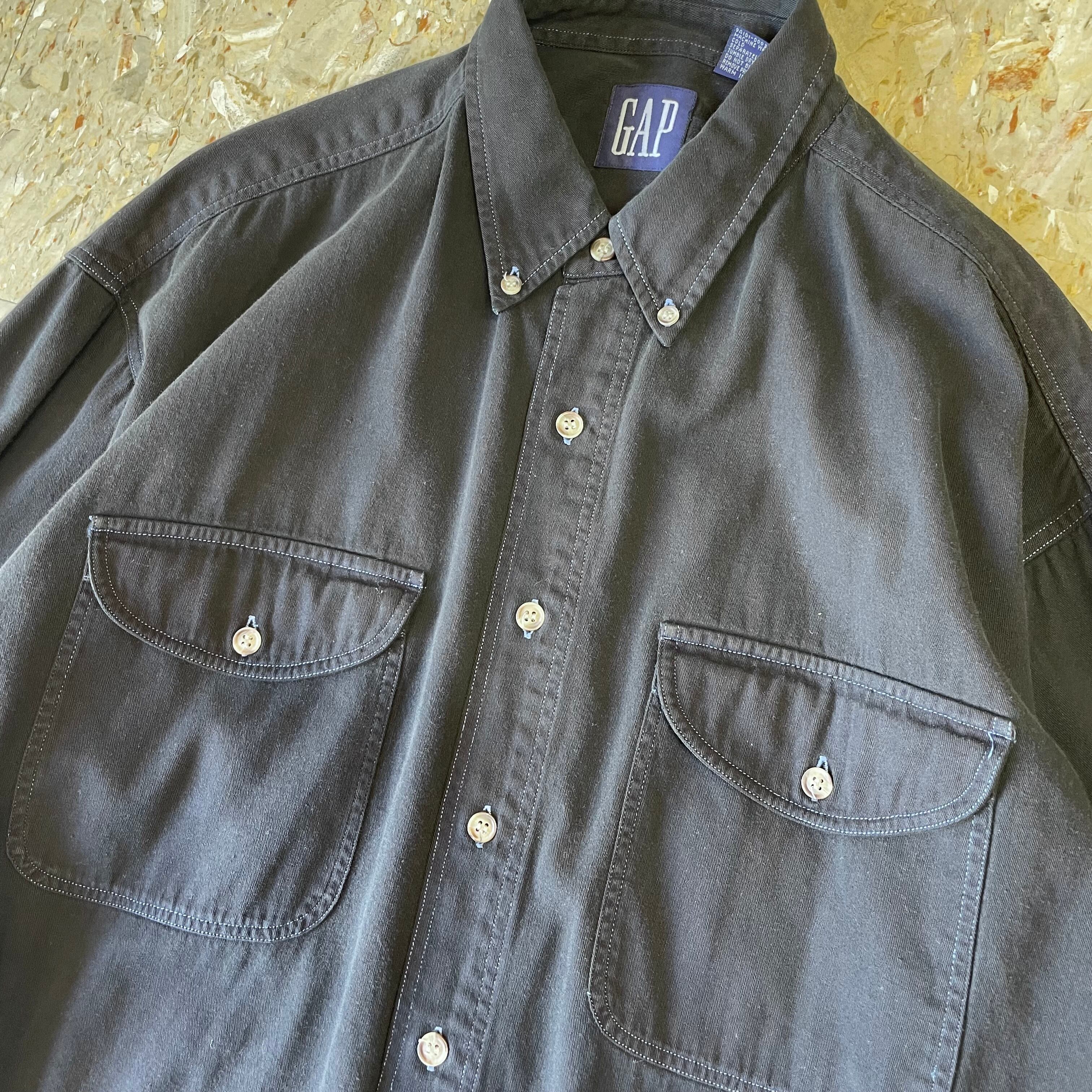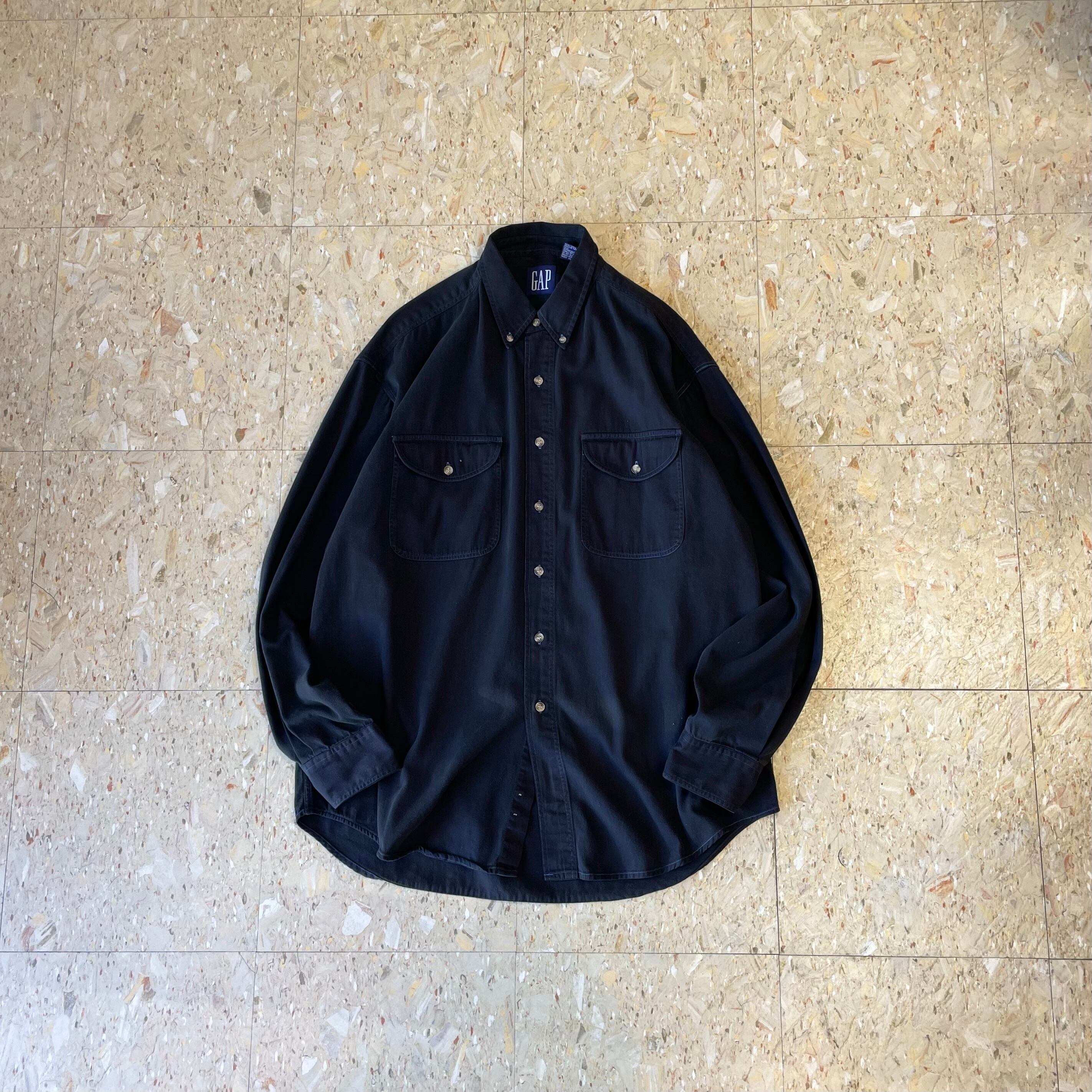 90s 【OLD GAP】 紺タグ オールドギャップ ボタンダウン シャツ ブラック 無地 size.L