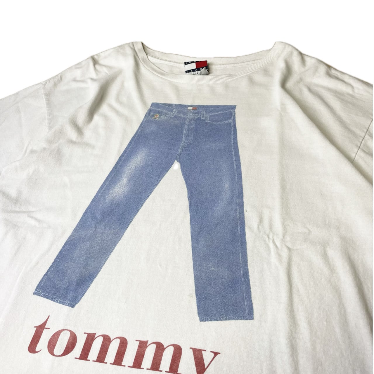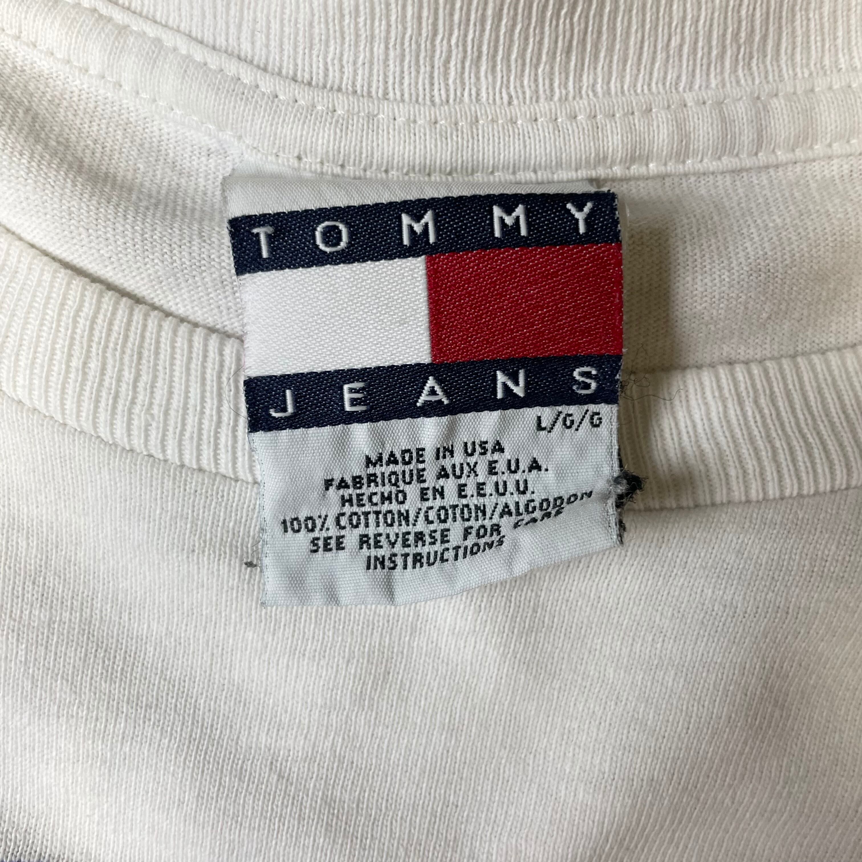 90s USA製 【Tommy Jeans】 トミージーンズ デニム 両面プリント Tシャツ size.L